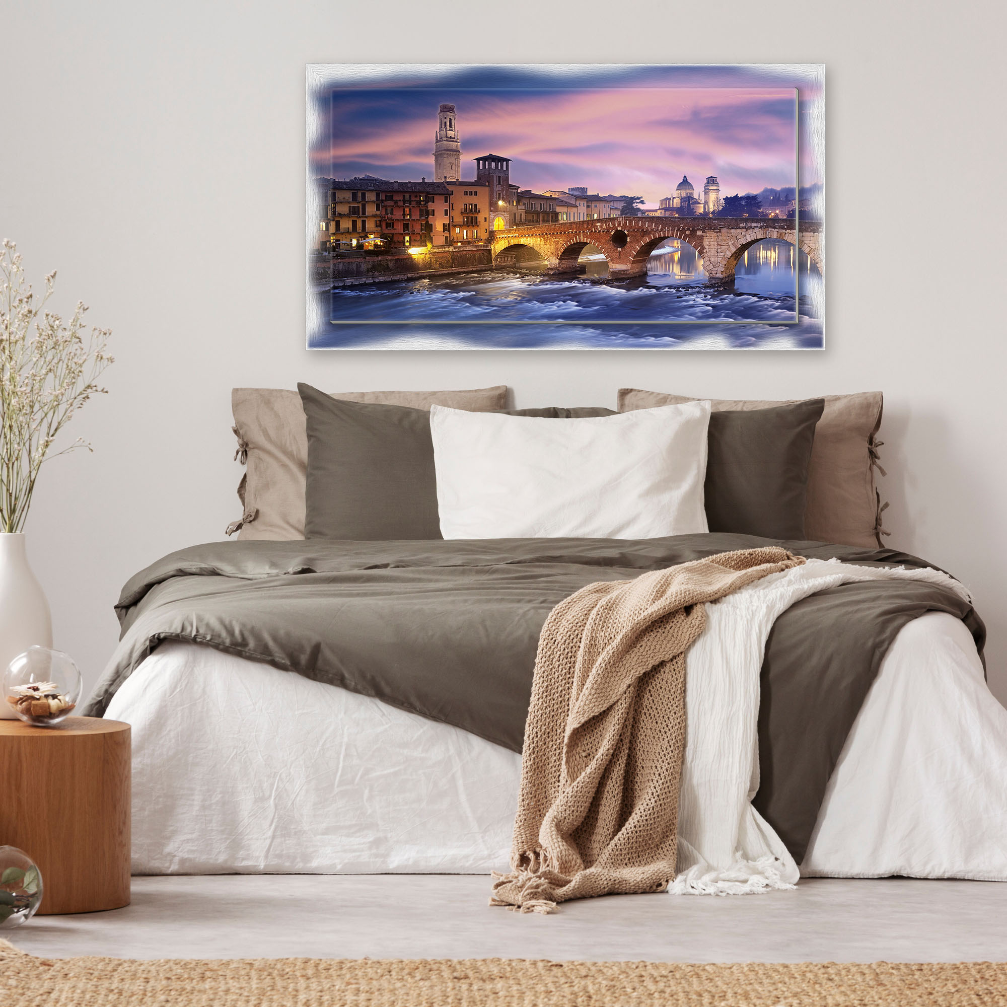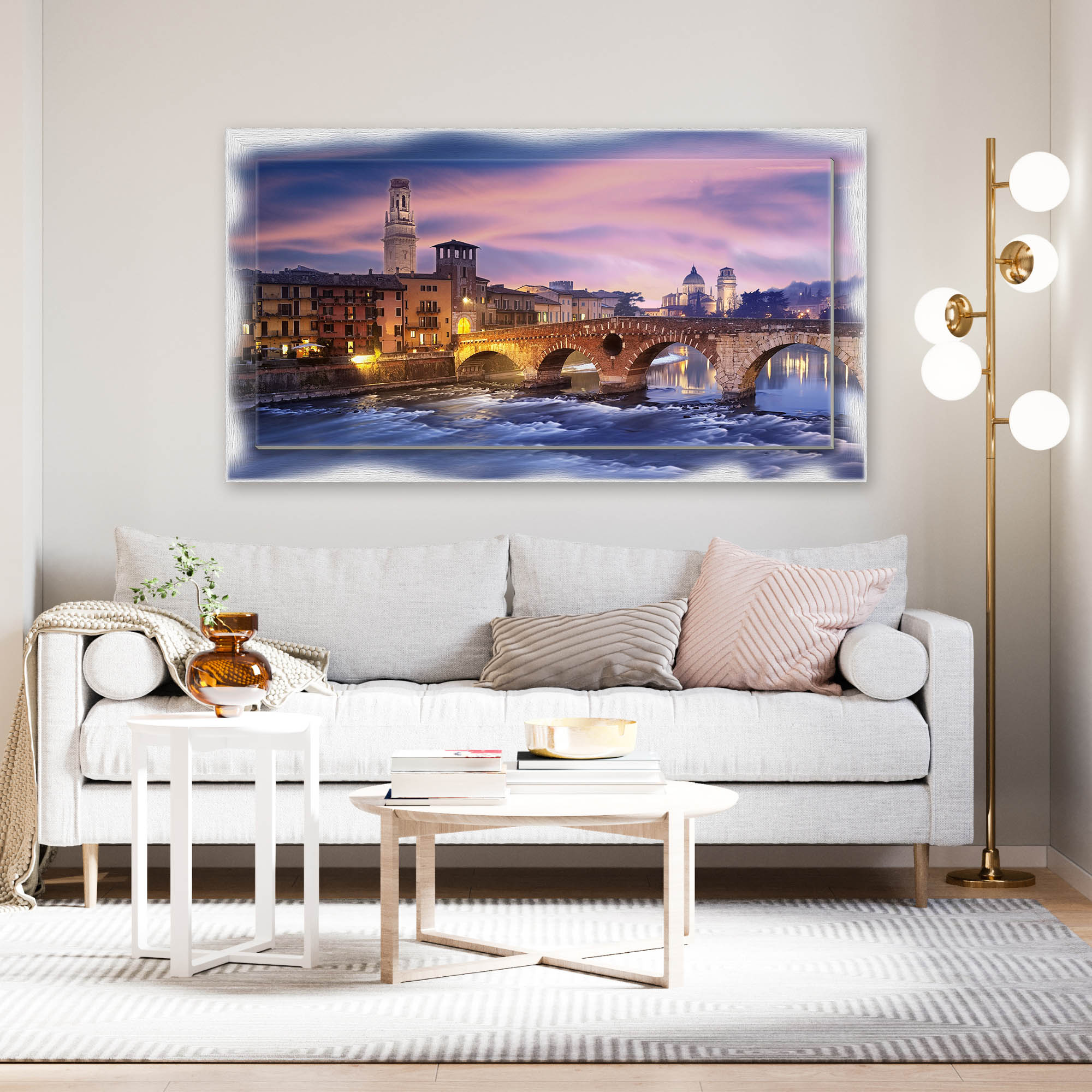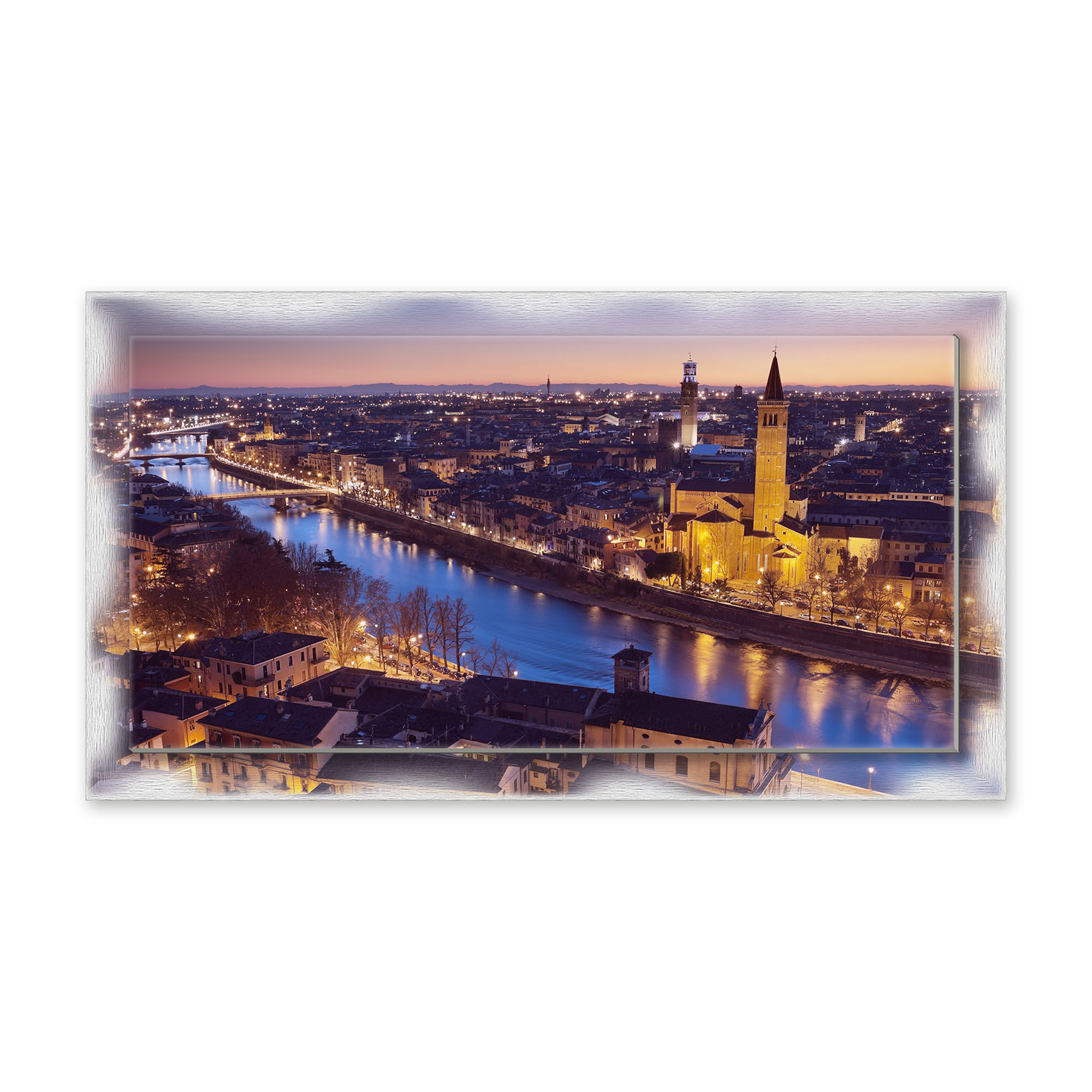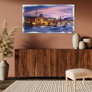 Lupia - Quadro moderno su Tela con Cornice stampata NEWEXT 75x135 cm, paesaggi localismi italiani, per casa soggiorno capezzale camera da letto hotel ufficio, VERONA PANORAMA NOTTE -