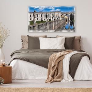 Ogni tela e' un omaggio alla ricca cultura e alle tradizioni delle diverse regioni d'Italia, catturando l'anima di paesaggiarchitetture e dettagli caratteristici. Questo quadro, con dimensioni totali di 75x135 cm, e' composto da una tela in cotone intelaiata su legno spesso 3 cm e incorniciata da una cornice in legno ecologico mdf, con decorazione stampata, larga 7 cm e spessa 1,2 cm. La cornice, seguendo il tema decorato della tela, crea un'estensione visiva che amplifica le dimensioni percepite e intensifica il senso di immersione nel soggetto rappresentato.
