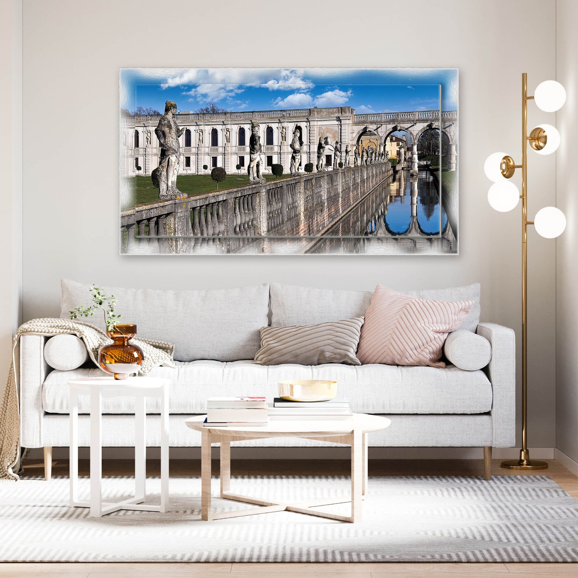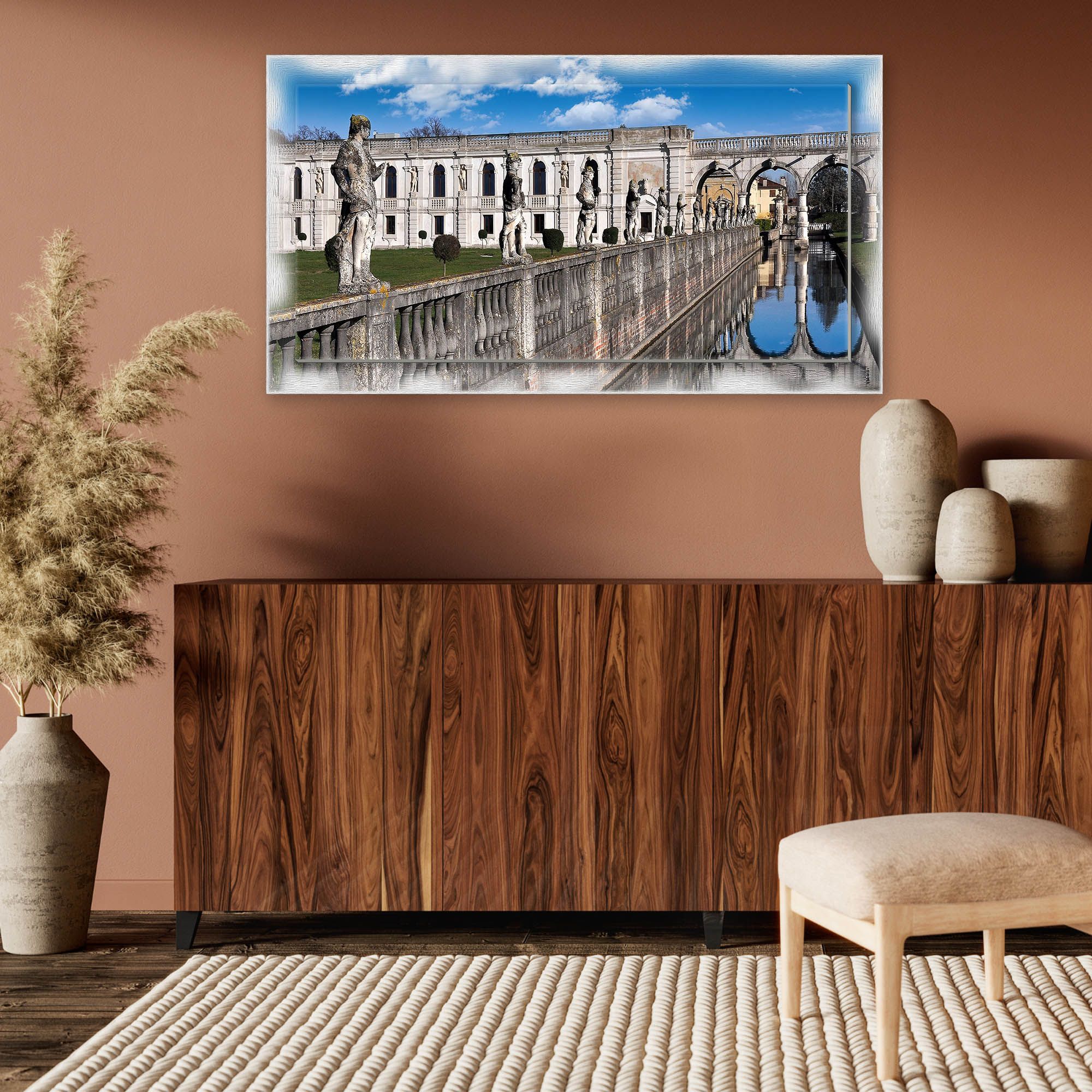 Lupia - Quadro moderno su Tela con Cornice stampata NEWEXT 75x135 cm, paesaggi localismi italiani, per casa soggiorno capezzale camera da letto hotel ufficio, VICENZA VILLA CONTARINI -