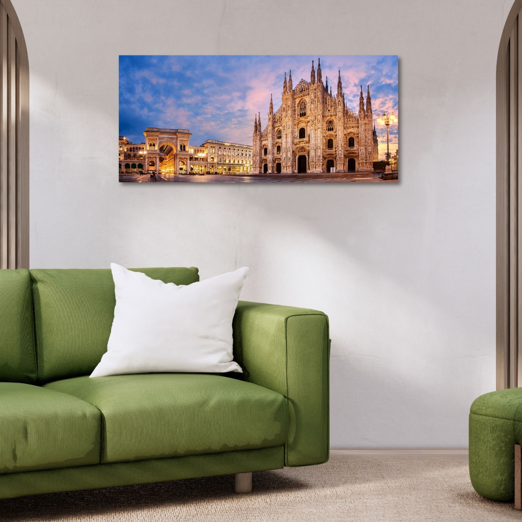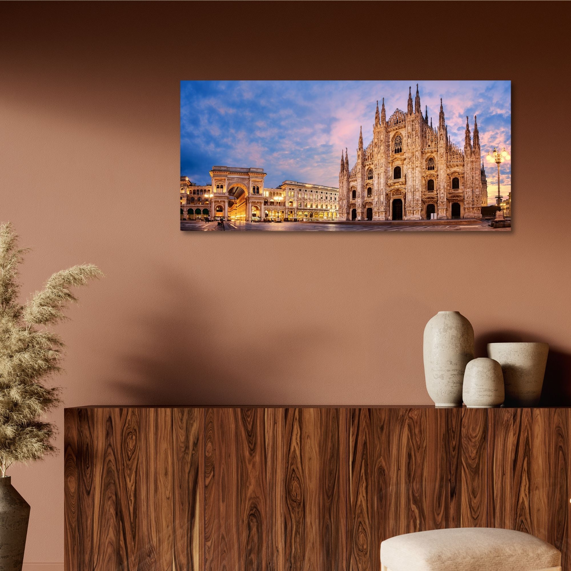 Scopri l'eleganza del Quadro su tela - Il Duomo di Milano al Tramonto, della collezione Lupia, un'opera d'arte che unisce design moderno e tradizione italiana.