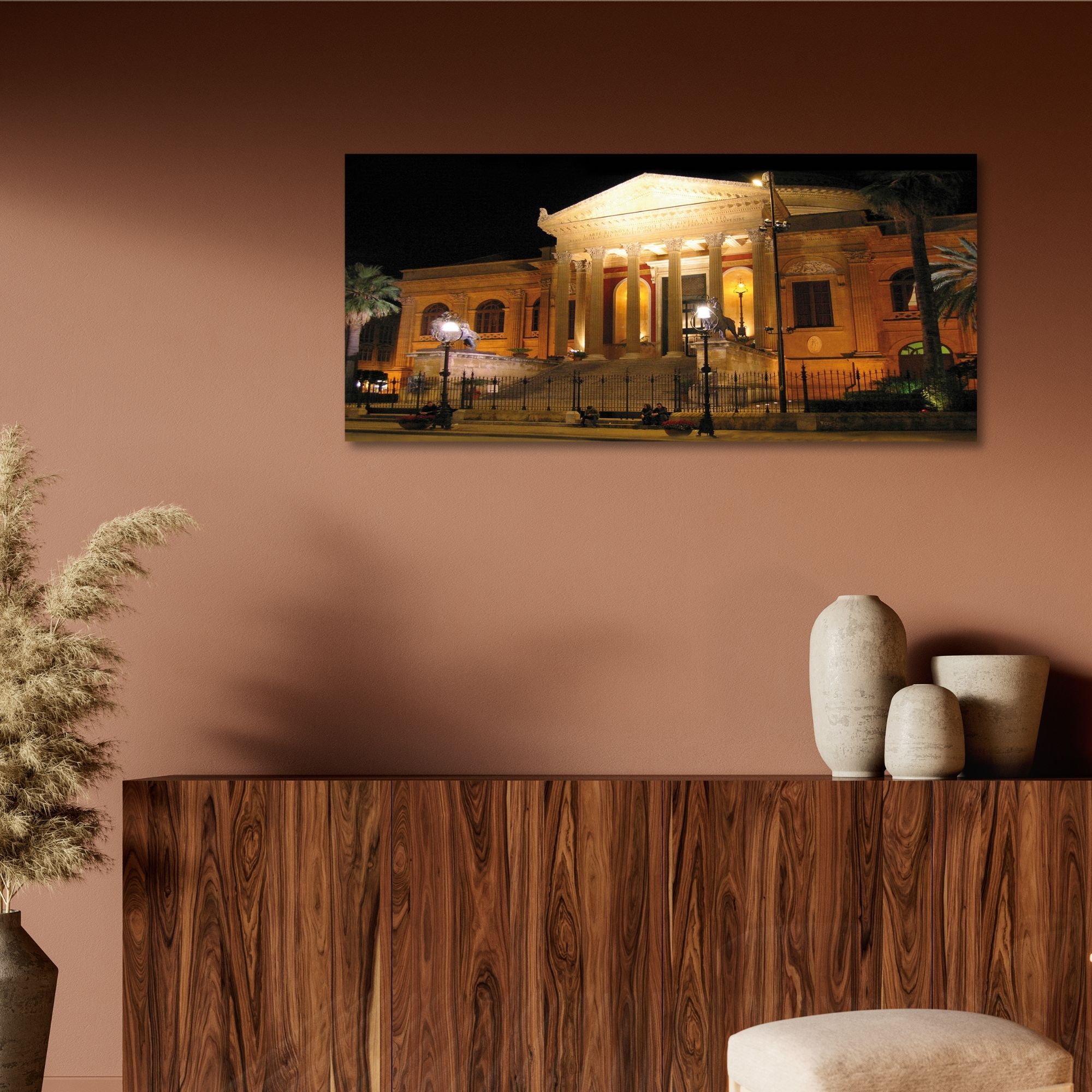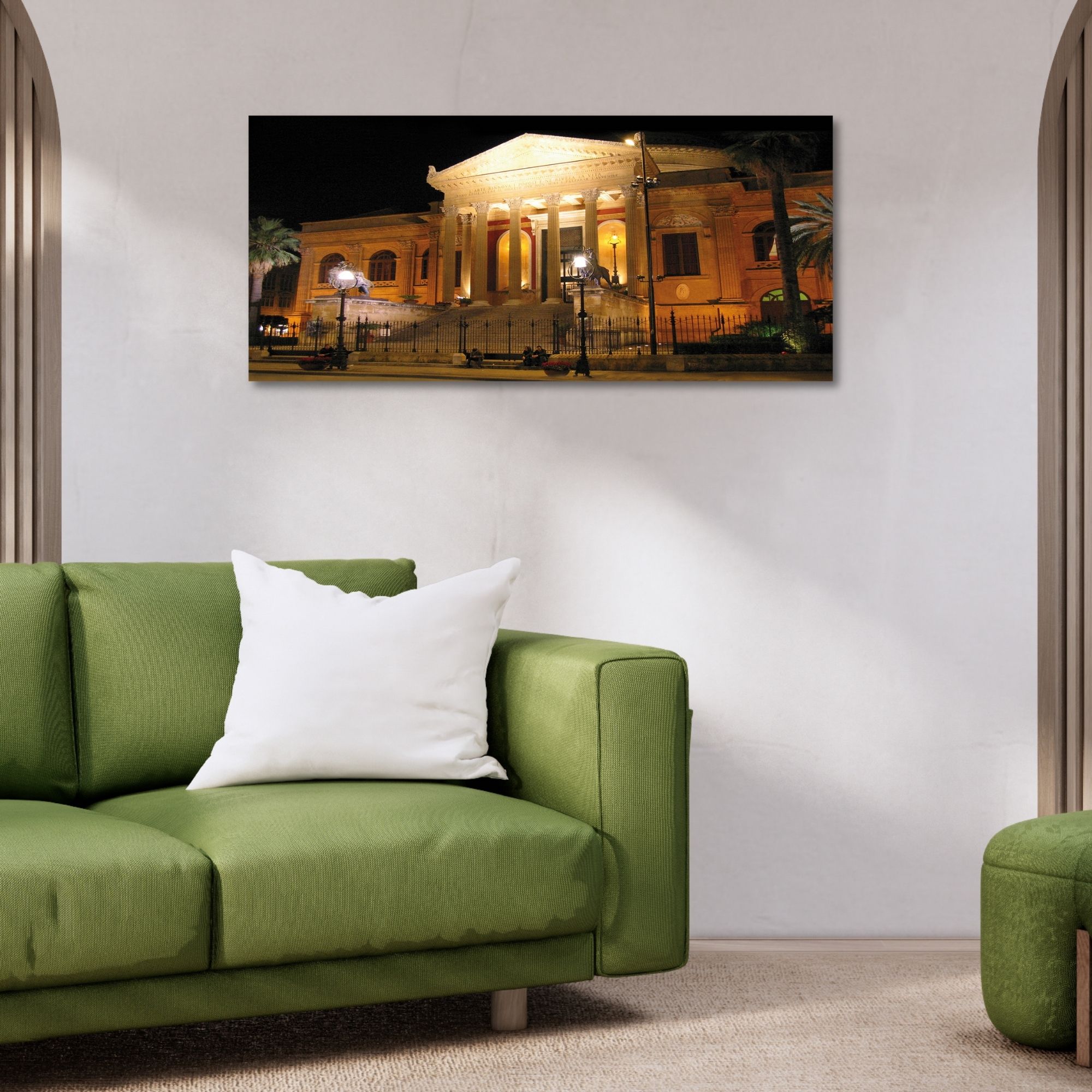 Lupia - Quadro moderno su Tela Canvas DEEP 65X143 cm, con paesaggi e localismi italiani, per casa, soggiorno, capezzale camera da letto, hotel, ufficio, PALERMO - TEATRO MASSIMO -