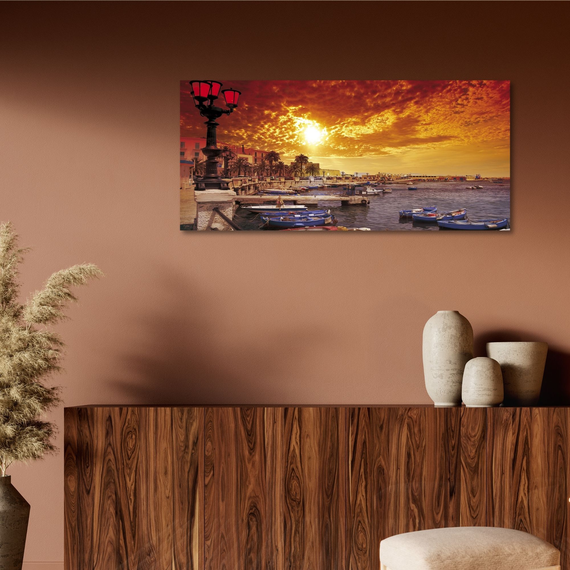 Lupia - Quadro moderno su Tela Canvas DEEP 65X143 cm, con paesaggi e localismi italiani, per casa, soggiorno, capezzale camera da letto, hotel, ufficio, PUGLIA - BARI HOT -