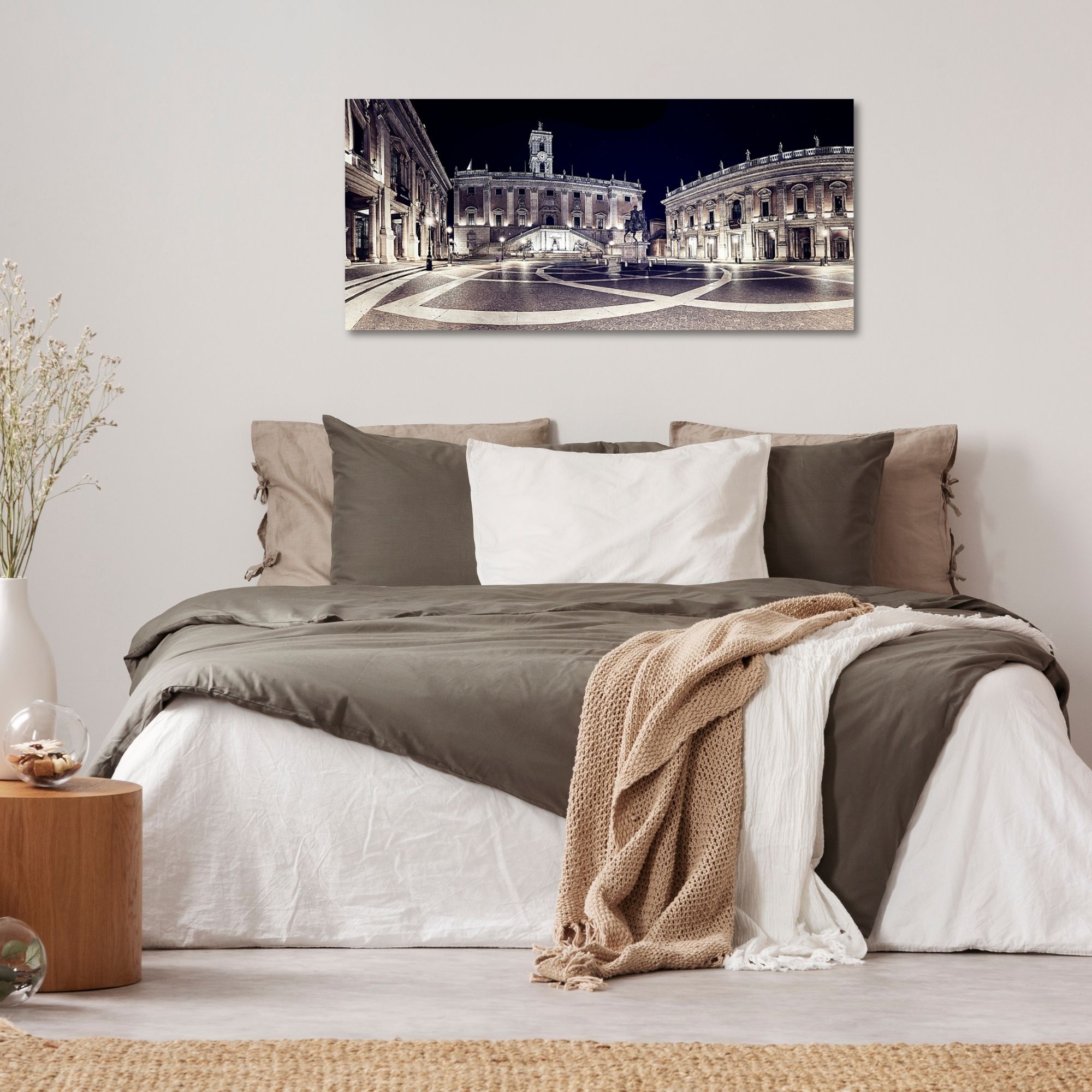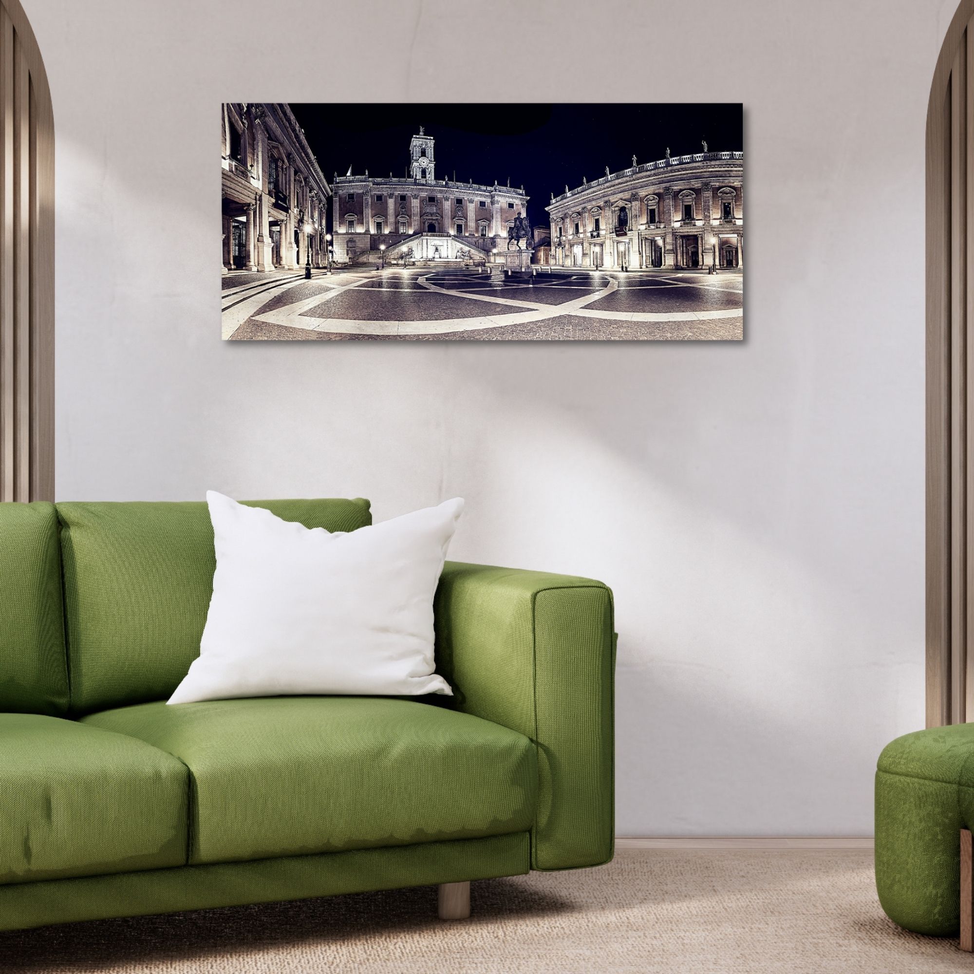 Lupia - Quadro moderno su Tela Canvas DEEP 65X143 cm, con paesaggi e localismi italiani, per casa, soggiorno, capezzale camera da letto, hotel, ufficio, ROMA - PIAZZA DEL CAMPIDOGLIO NIGHT -