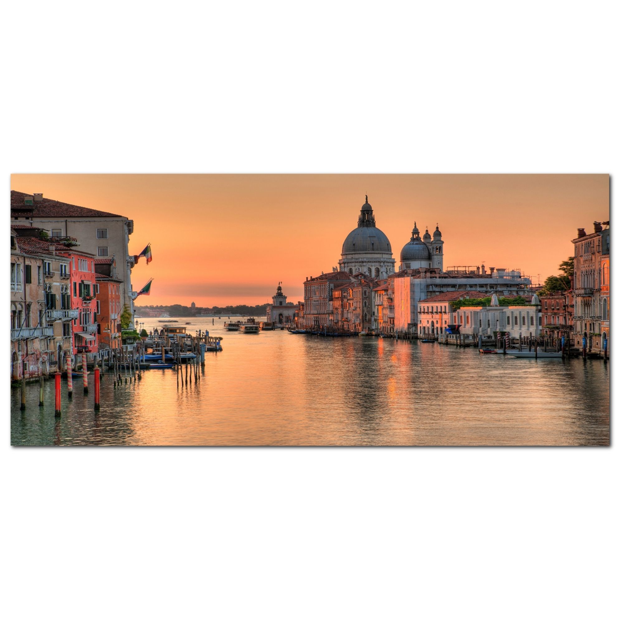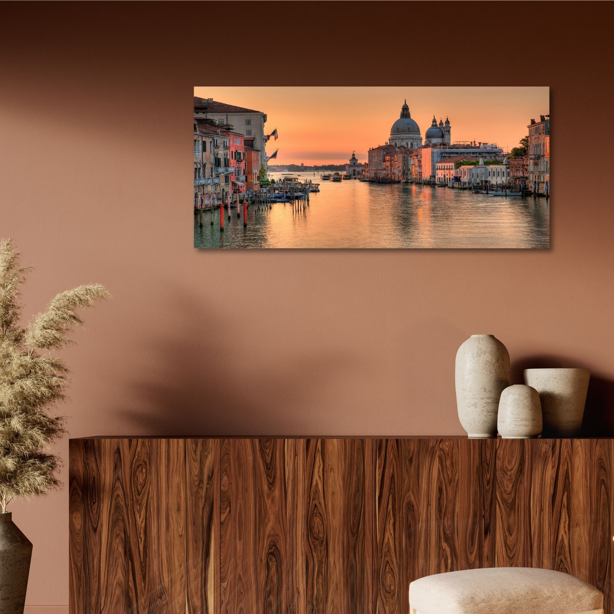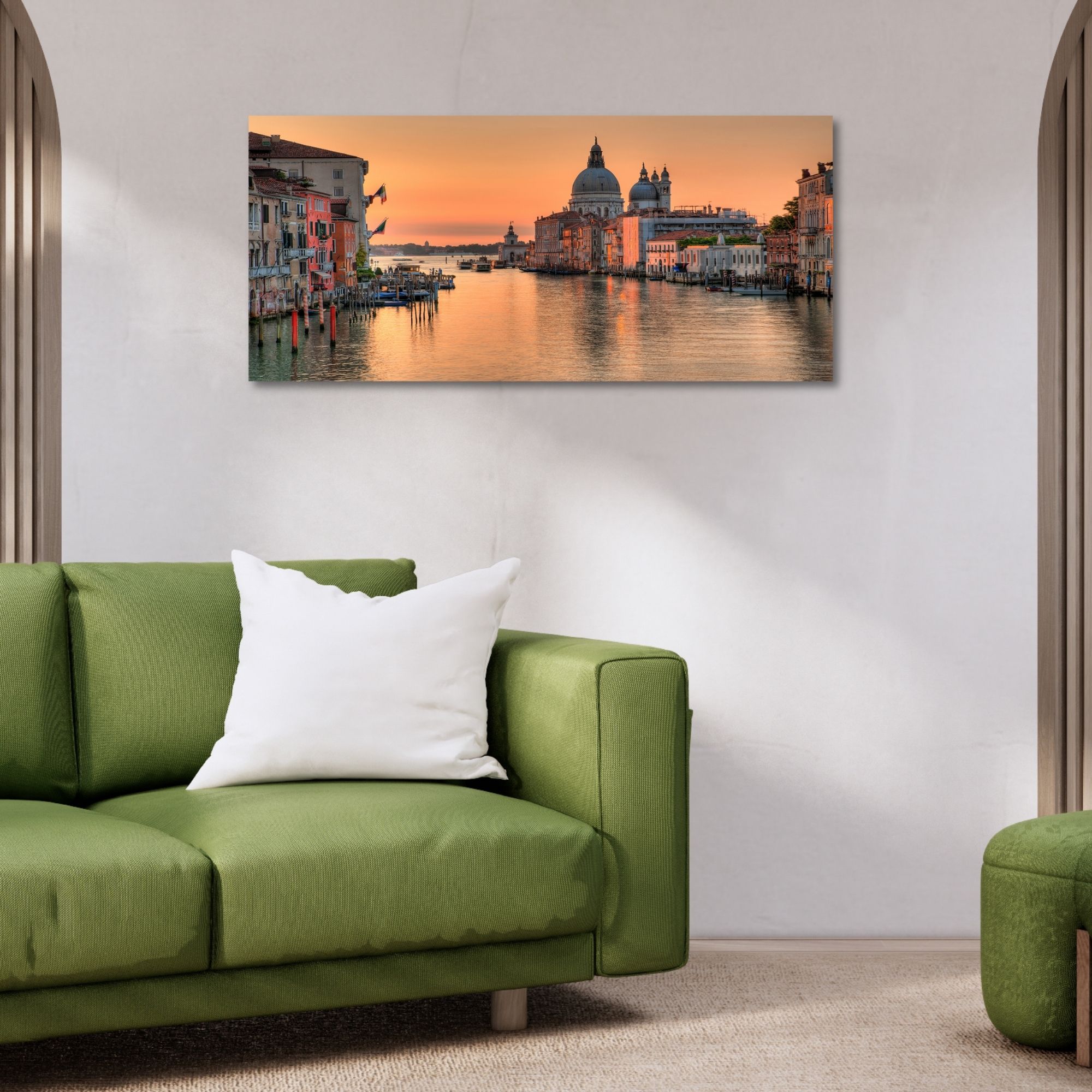 Lupia - Quadro moderno su Tela Canvas DEEP 65X143 cm, con paesaggi e localismi italiani, per casa, soggiorno, capezzale camera da letto, hotel, ufficio, VENEZIA - CHIESA DELLA SALUTE TWILIGHT -