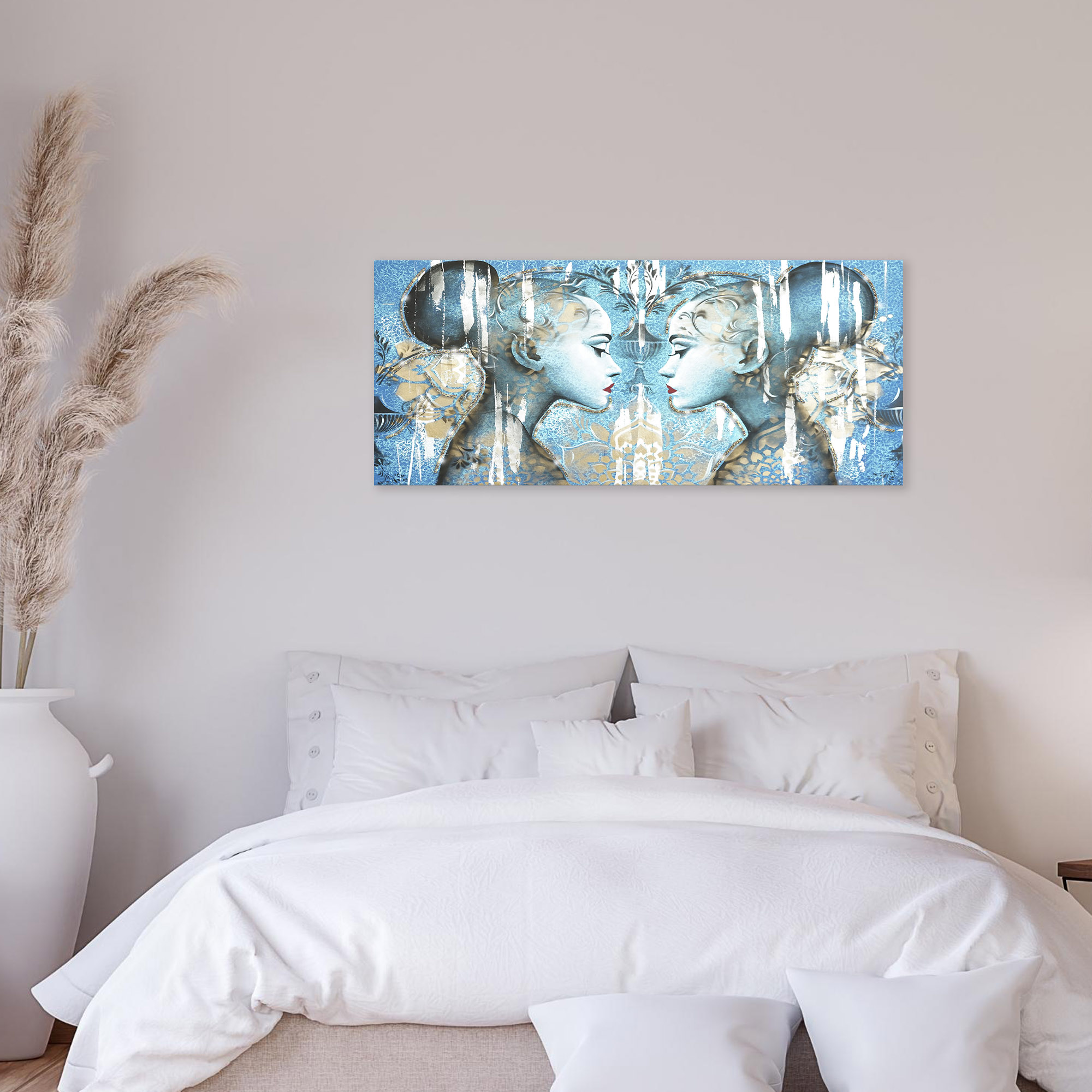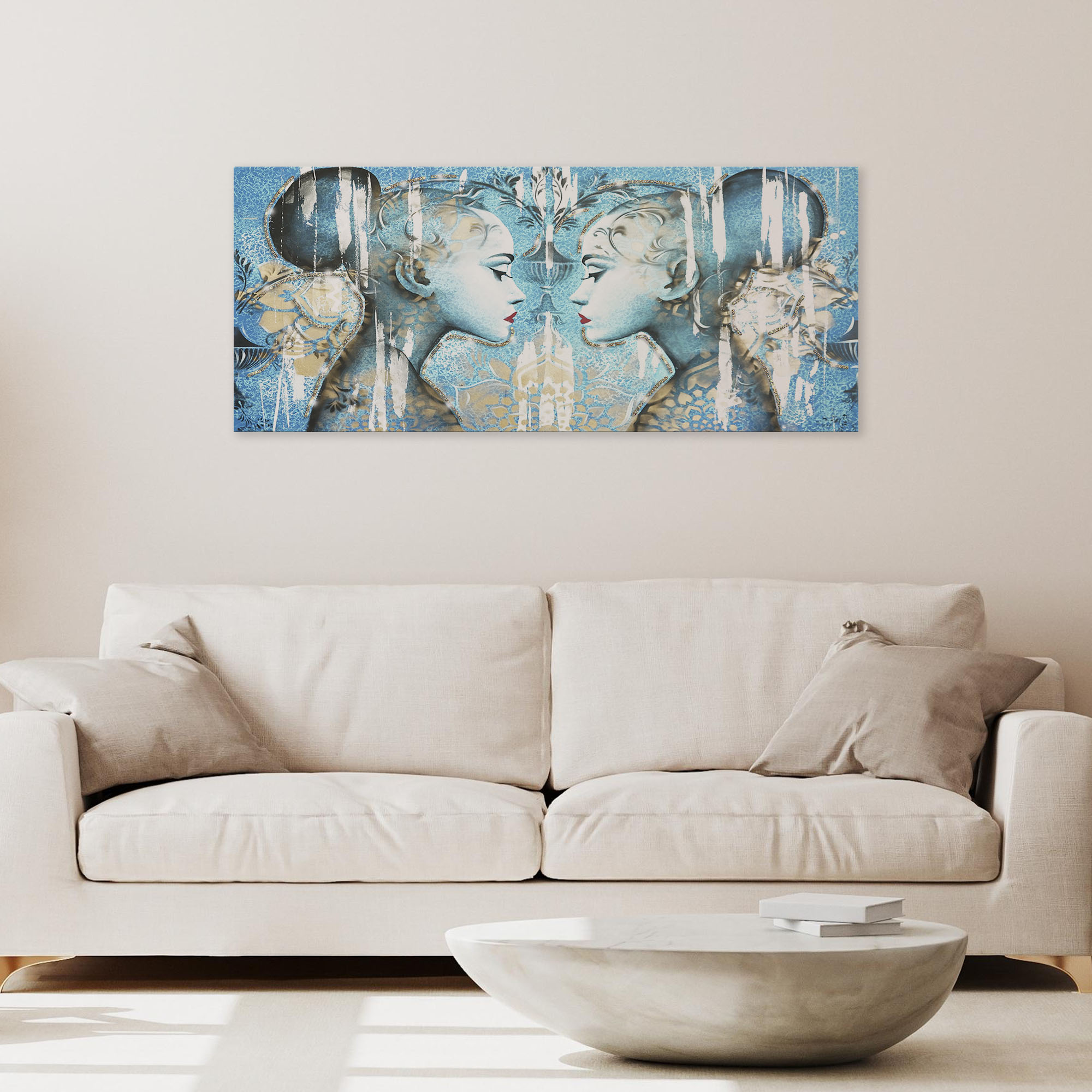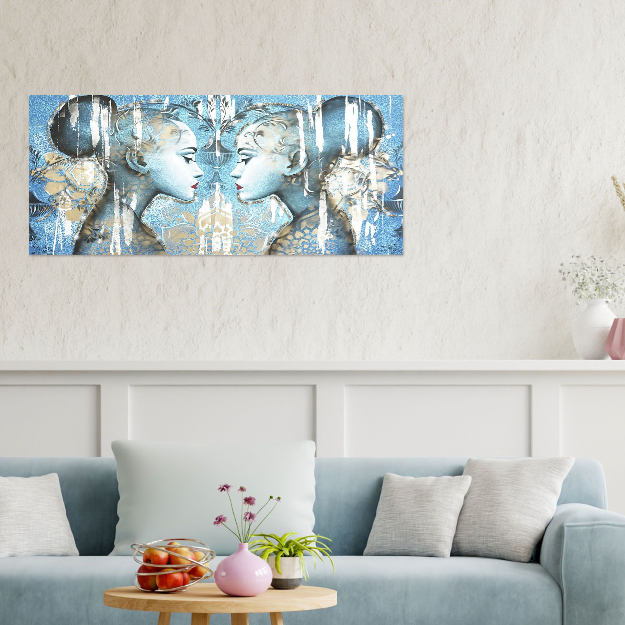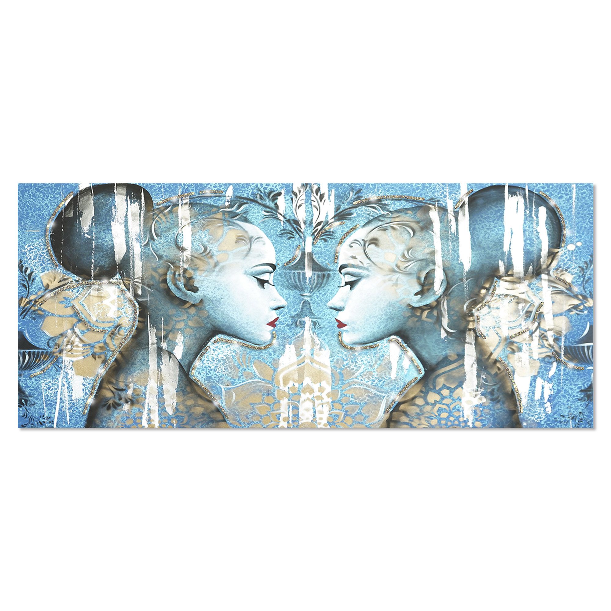 Immergetevi nell'arte contemporanea con il quadro "PROFILI" di Lupia, un'opera che cattura l'essenza della natura umana attraverso l'immagine di un volto femminile di profilo con tonalità azzurre e oro. Questo quadro, di dimensioni 65x149 cm, è una fusione perfetta e unica di tradizione e innovazione, realizzato interamente in Italia con una dedizione all'artigianalità che lo rende un vero e proprio capolavoro.