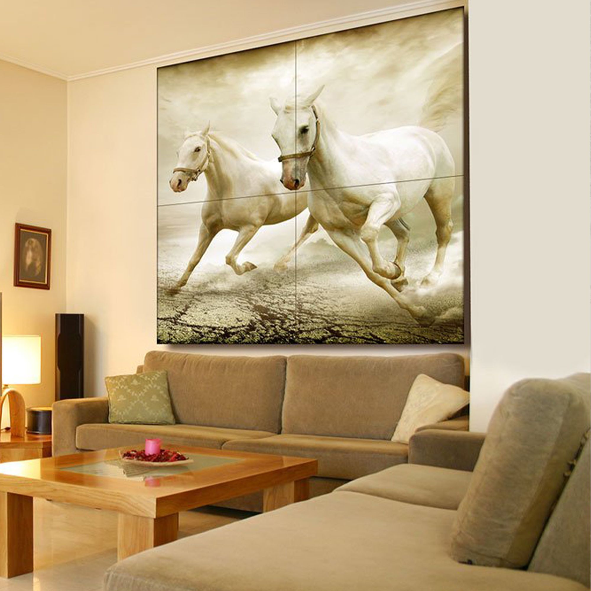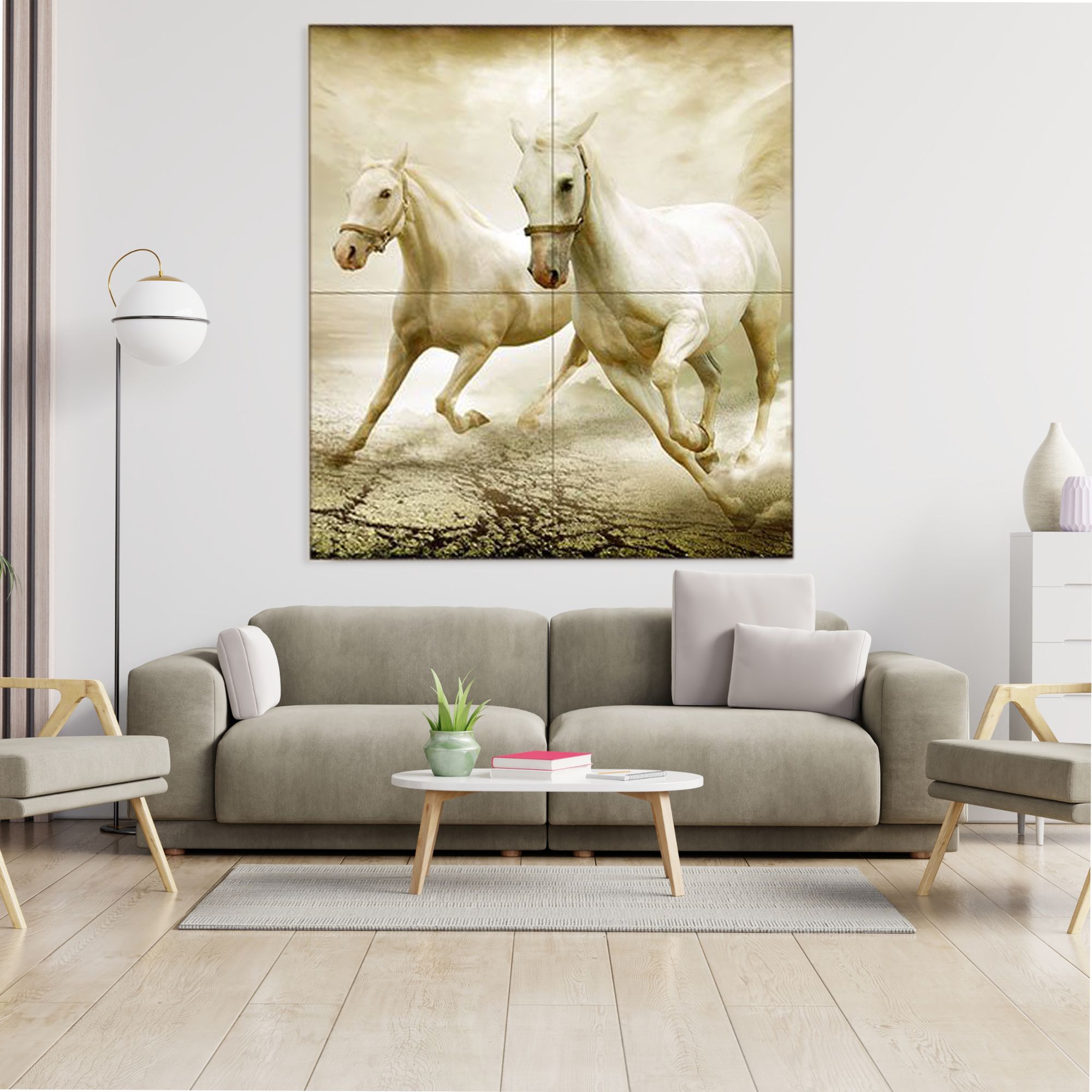 Quadro moderno grande su tela WALL 2x2 m ANIMALI CAVALLI BROWN, set 4 pz tele 1x1 m per soggiorno camera da letto -