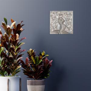 Lupia - Quadro moderno soggiorno camera da letto MONDIE' 31x31 cm ALBERO ABBRACCIO MIX poster su legno con effetto metallizzato lamina argento, capezzale amore e famiglia, idea regalo -