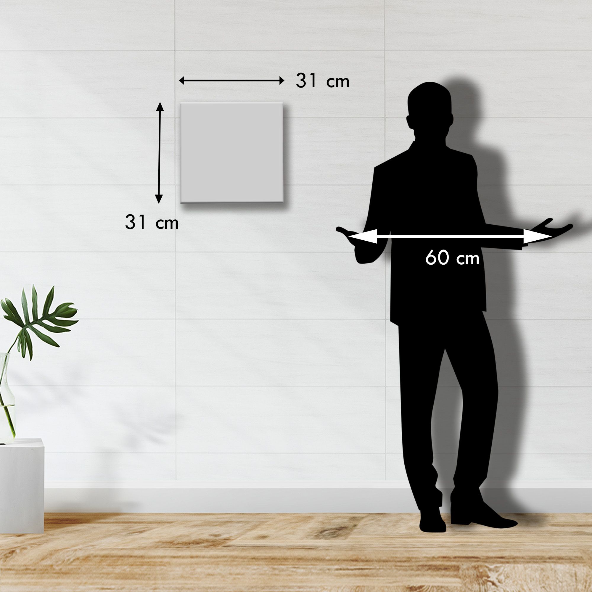 La sospensione del quadro avviene mediante una cordicella a scomparsa sul retro e non e' provvisto di vetro. Il prodotto e' realizzato completamente in Italia e le sue dimensioni sono 31x31 cm.