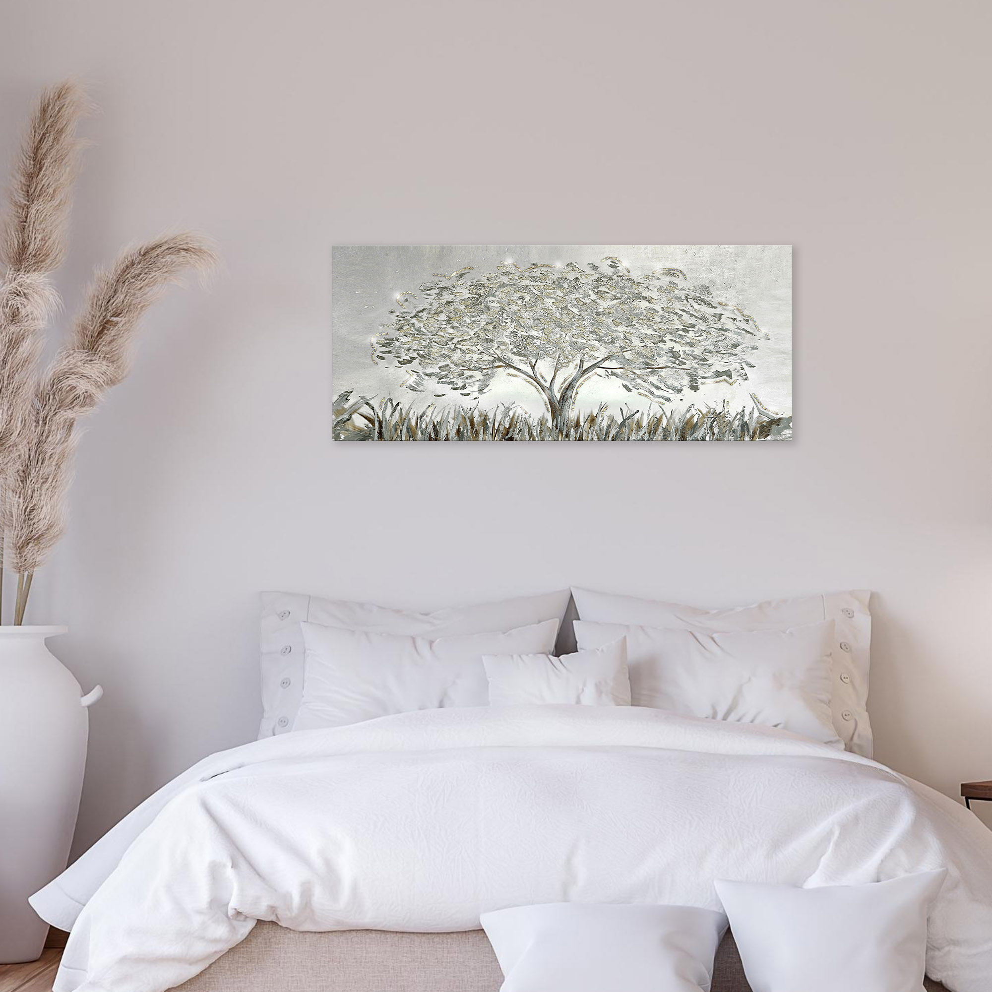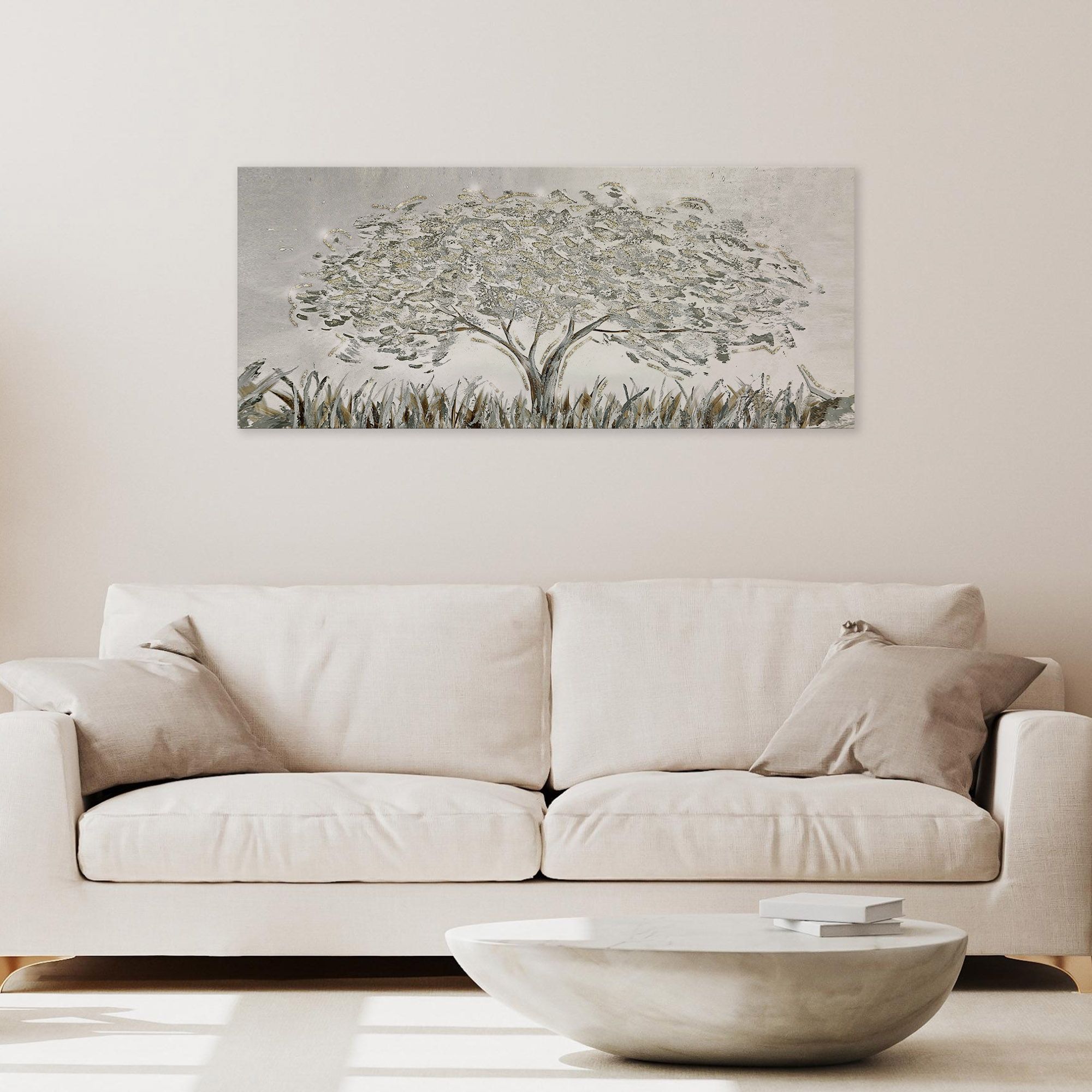 Immergetevi nell'arte contemporanea con il quadro "ALBERO GREY GLITTER" di Lupia, un'opera che cattura l'essenza della natura attraverso l'immagine di un albero in un campo nelle tonalità del grigio. Questo quadro, di dimensioni 65x149 cm, è una fusione perfetta e unica di tradizione e innovazione, realizzato interamente in Italia con una dedizione all'artigianalità che lo rende un vero e proprio capolavoro.