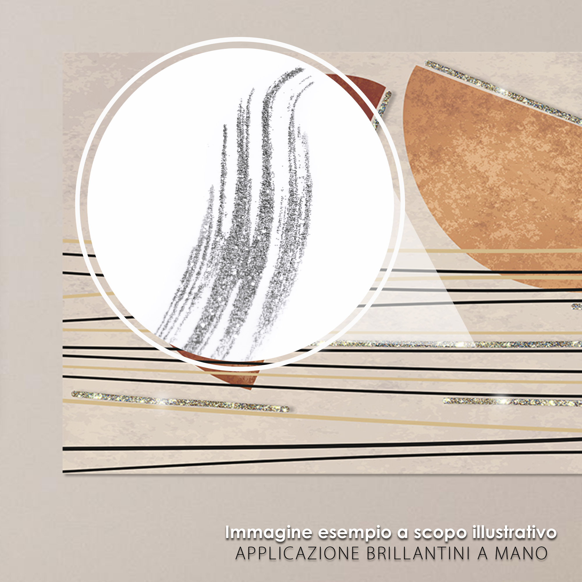 La tela, un robusto poliestere, è impreziosita da brillantini e glitter argento che aggiungono un tocco di magia e vivacità, rendendo ogni visione un'esperienza unica. Il telaio, in fibra di legno ecologica spesso 1,6 cm, conferisce solidità all'opera, pronta per essere appesa senza sforzi e integrarsi armoniosamente in qualsiasi ambiente.