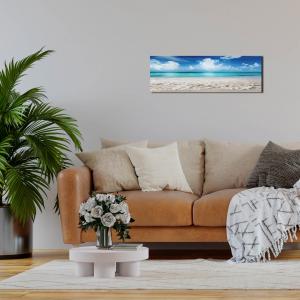 Le stampe digitali ad alta risoluzione raffigurano una spiaggia bianca con cielo azzurro, creando un'esplosione di colori vividi che arricchiscono qualsiasi ambiente.