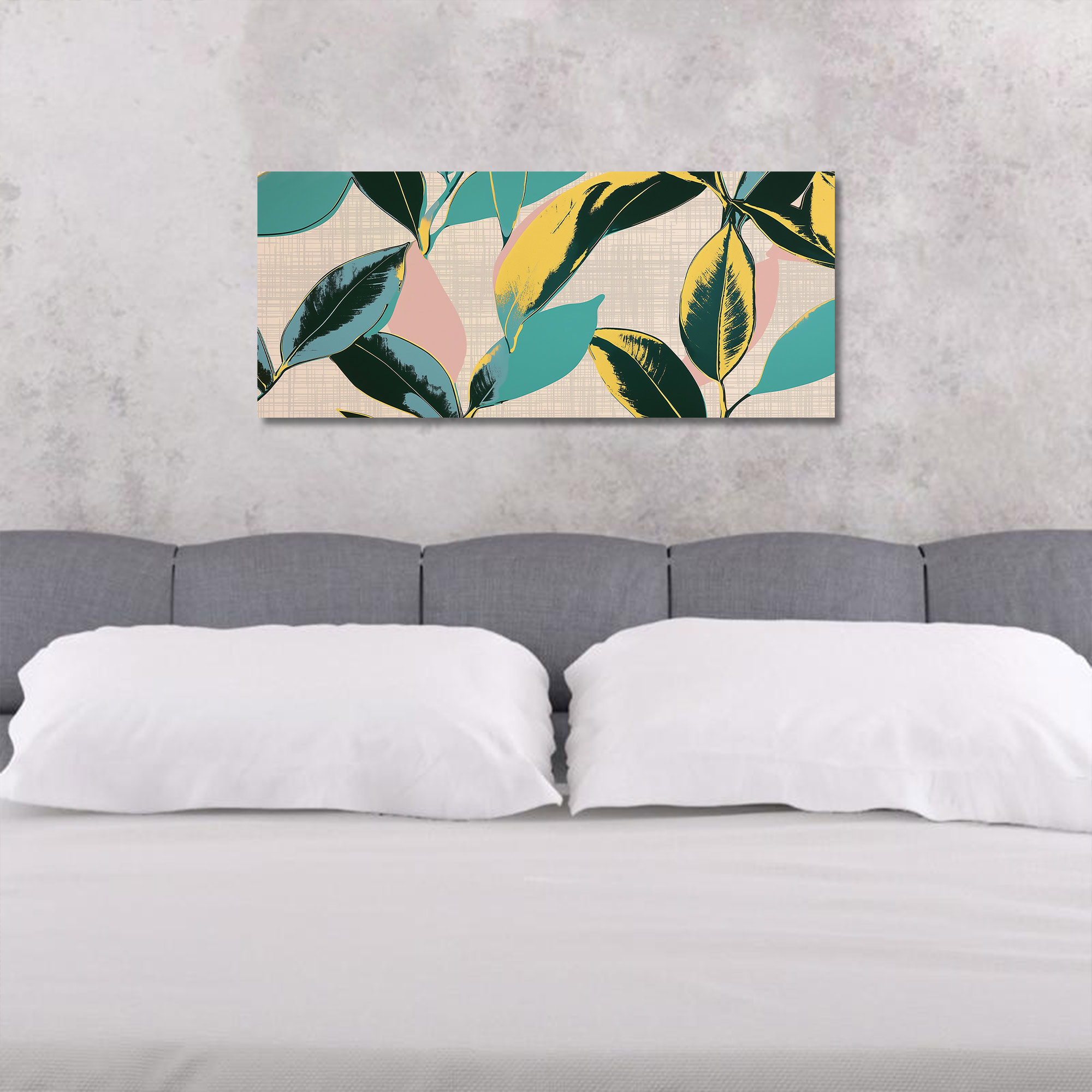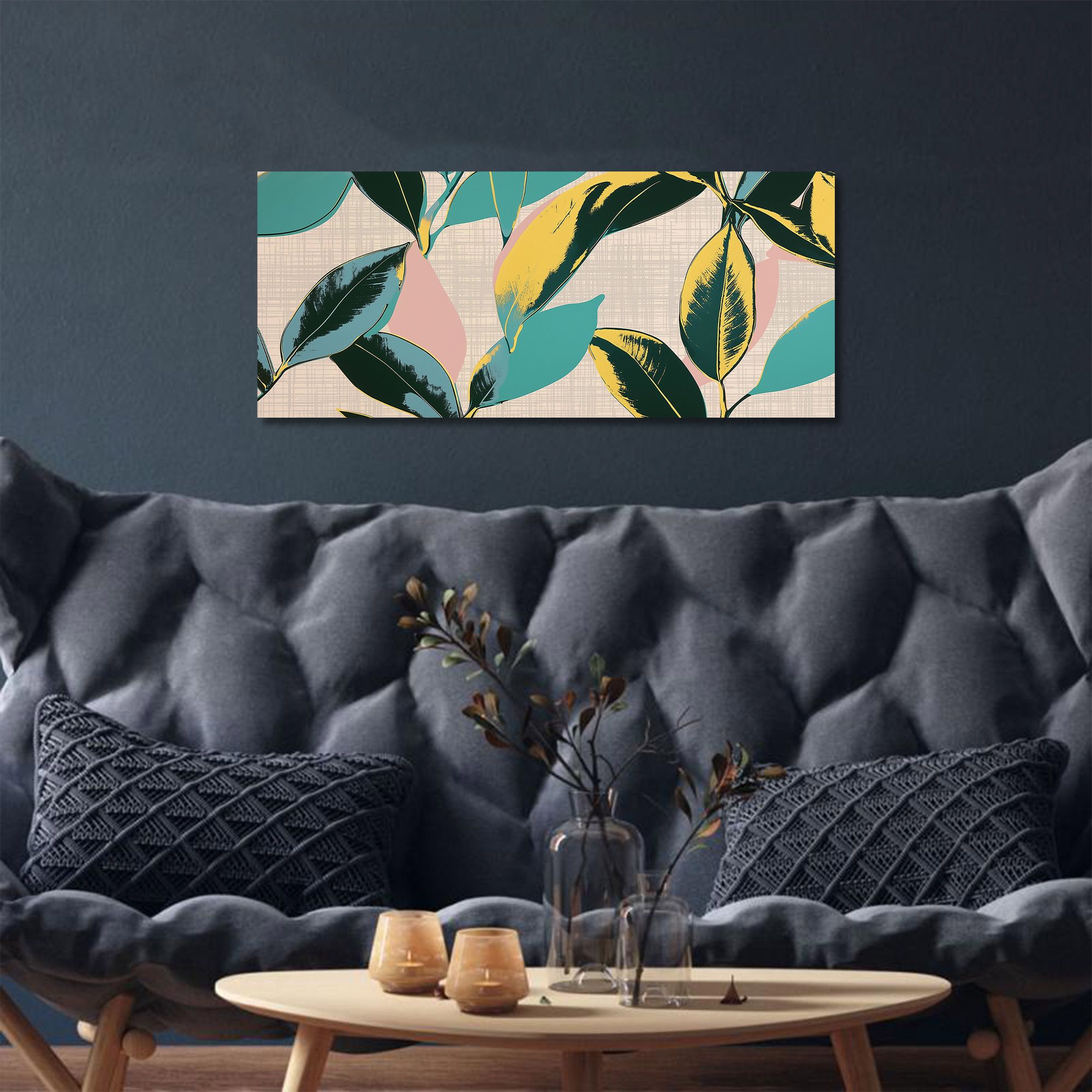 Lupia - Quadro moderno Canvas World LEAVES CARTOON PINK, Stampa su Tela PVC, Telaio in Fibra di Legno, effetto marmo, 52x122 cm, per soggiorno capezzale camera da letto, ufficio -