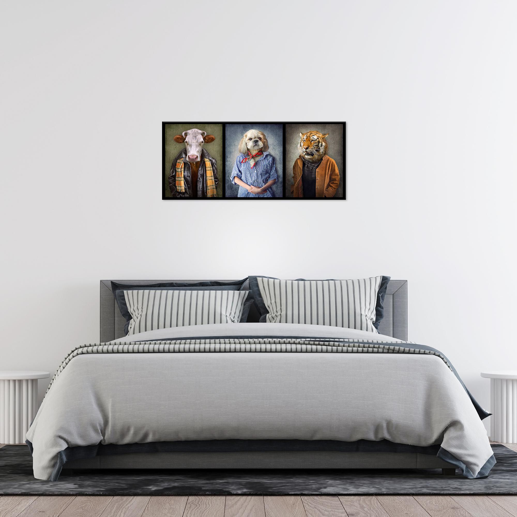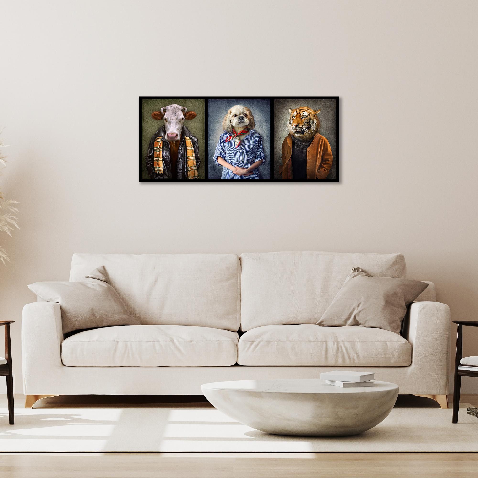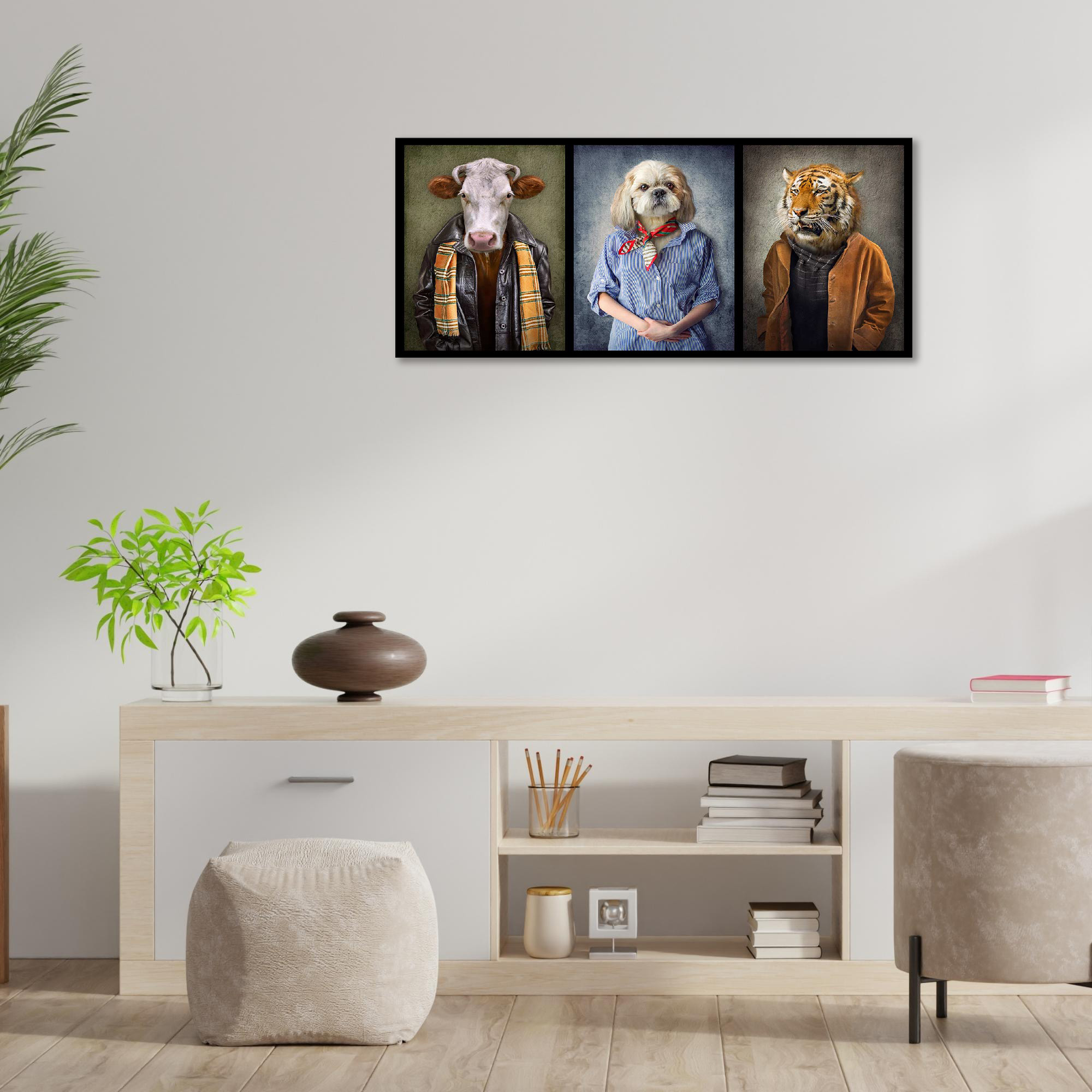 Quadro moderno Canvas World, una rappresentazione con stampa su tela pvc, con telaio in fibra di legno ecologica spesso 1,6 cm, gia’ montata, pronto da appendere facilmente. Sono stampe artistiche digitali ad alta risoluzione con tema del mondo animale surreale, una tela ricca di colori vividi e di fattura esclusivamente artigianale realizzata completamente in Italia. Il quadro dona un tocco di arte e colore alla tua parete. Un’idea originale per decorare le pareti della tua casa come soggiorno, camera da letto, in cucina, bagno, sale da pranzo, o di tutti i tuoi ambienti anche non domestici, come ufficio, Hotel, bar, negozio o laboratorio, perché sono adatte a qualsiasi tipologia di stile e arredamento. Per dare ancora piu' importanza al prodotto il bordo e' decorato sui colori della tela quindi viene data continuazione alla stampa ingrandendo cosi' l’ottimo effetto visivo del quadro. La dimensione totale del prodotto e' 52x122 cm.