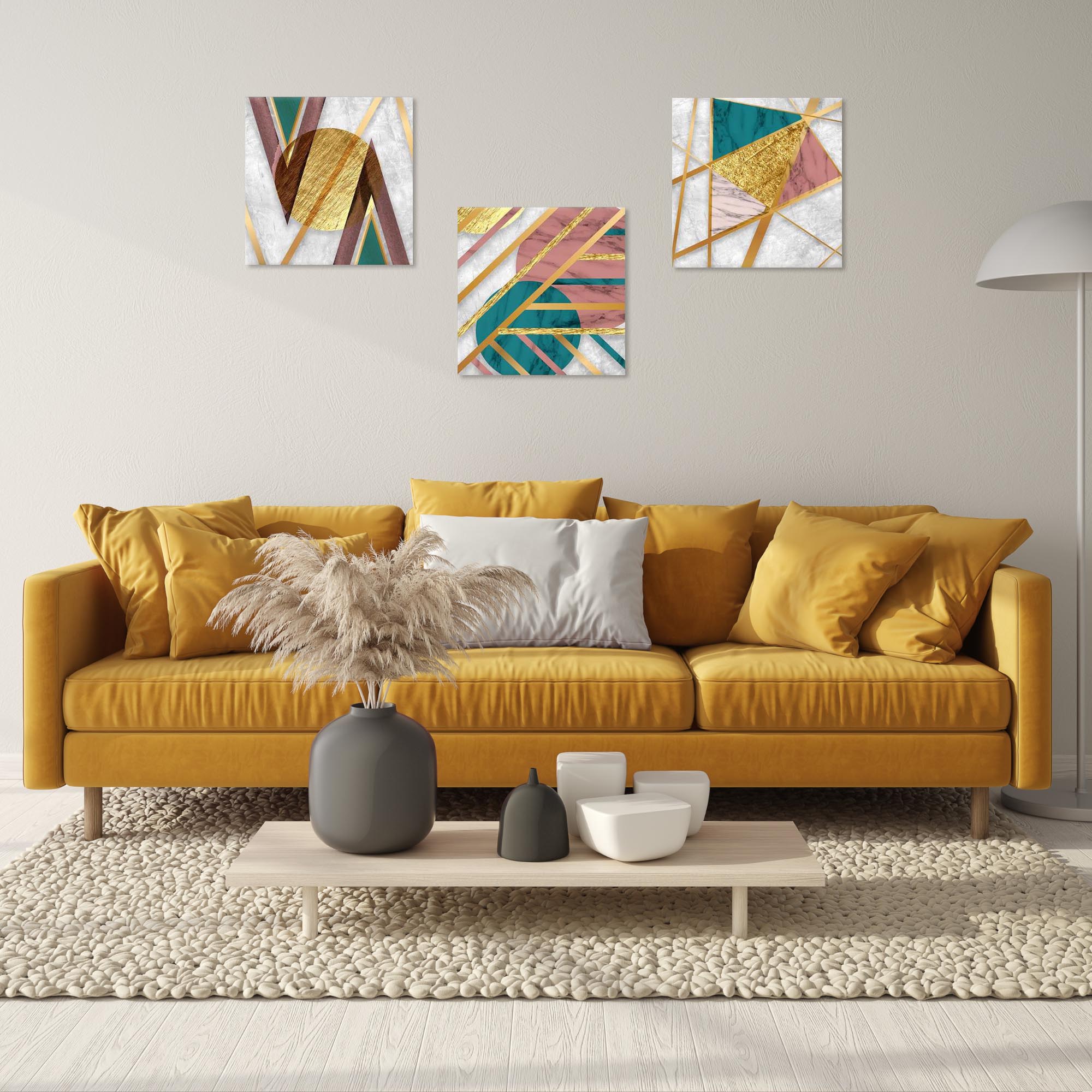 3 tele, pronte per essere appese, un’idea originale per decorare le pareti della tua casa come in soggiorno dietro al divano, in camera da letto dietro la testata, in cucina, sale da pranzo, o tutti i tuoi ambienti anche non domestici, come ufficio, Hotel, bar, negozio o laboratorio, perché sono adatte a qualsiasi tipologia di stile e arredamento.