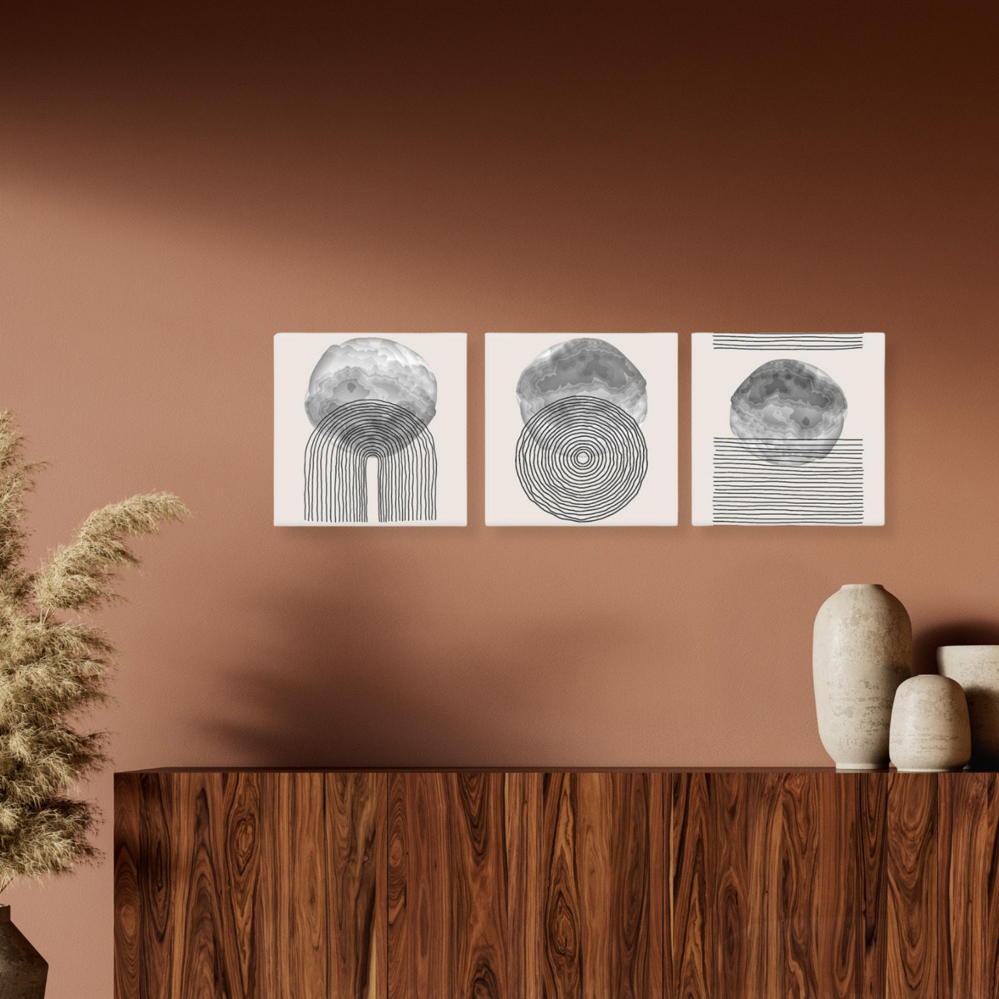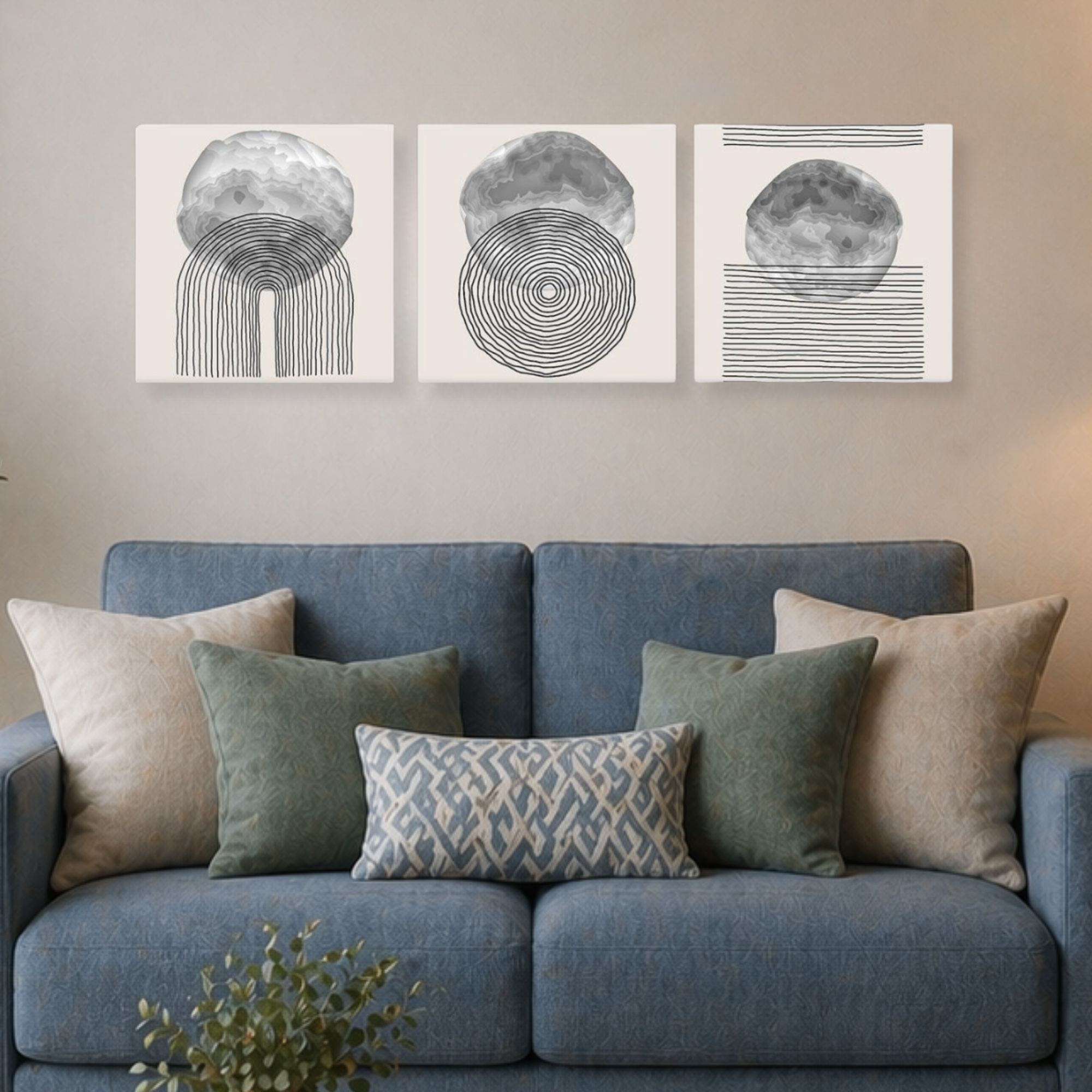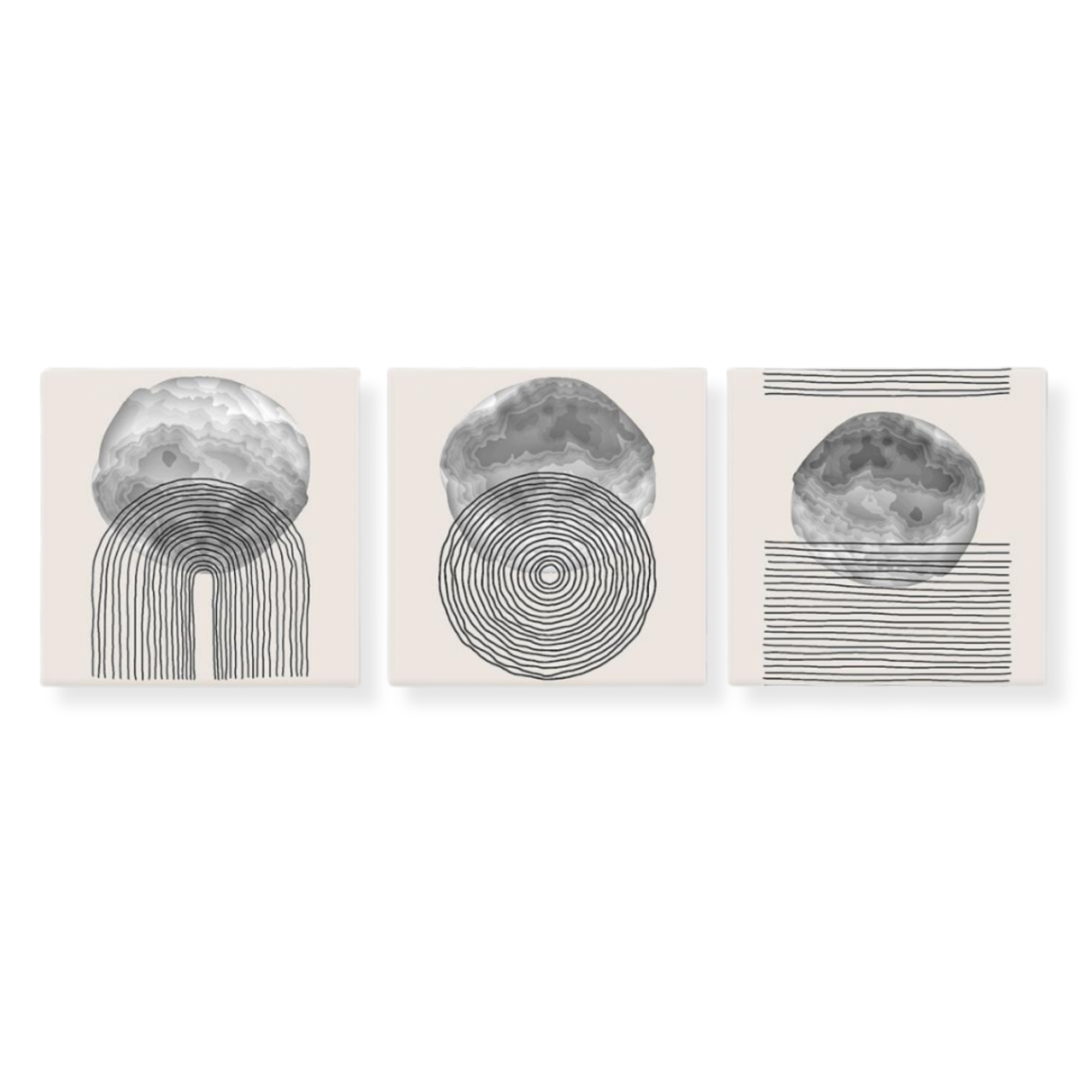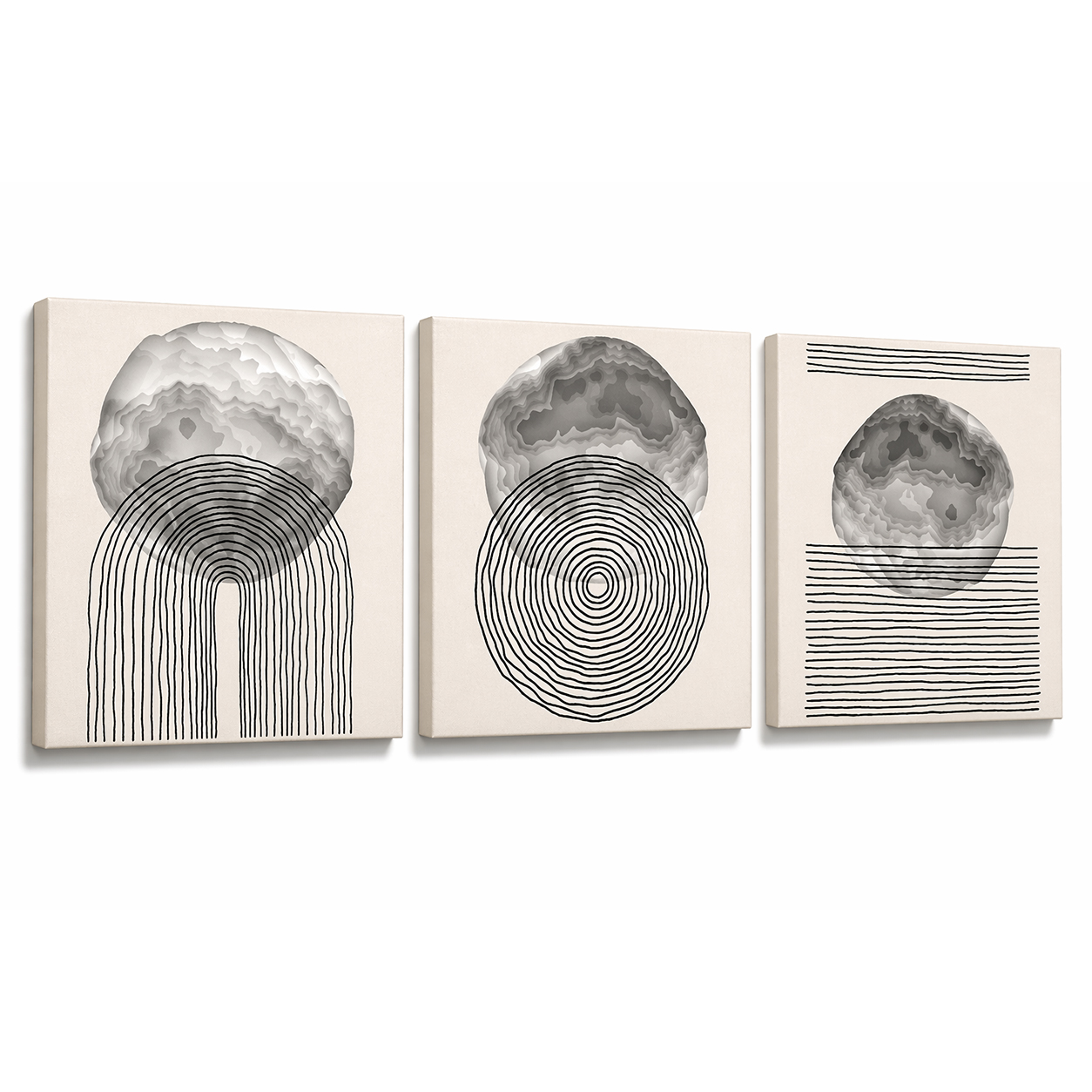Una nuova ed originale decorazione che nobilita e rende piacevole il tuo arredo con il tema geomoetrico astratto nei toni del grigio. Ogni quadro è pronto da appendere con telaio in legno ecologico gia' montato e tela in poliestere con spessore di 12 mm, puoi appendere i 3 quadri come preferisci e nell'ordine che più ti piace per creare la tua parete artistica.