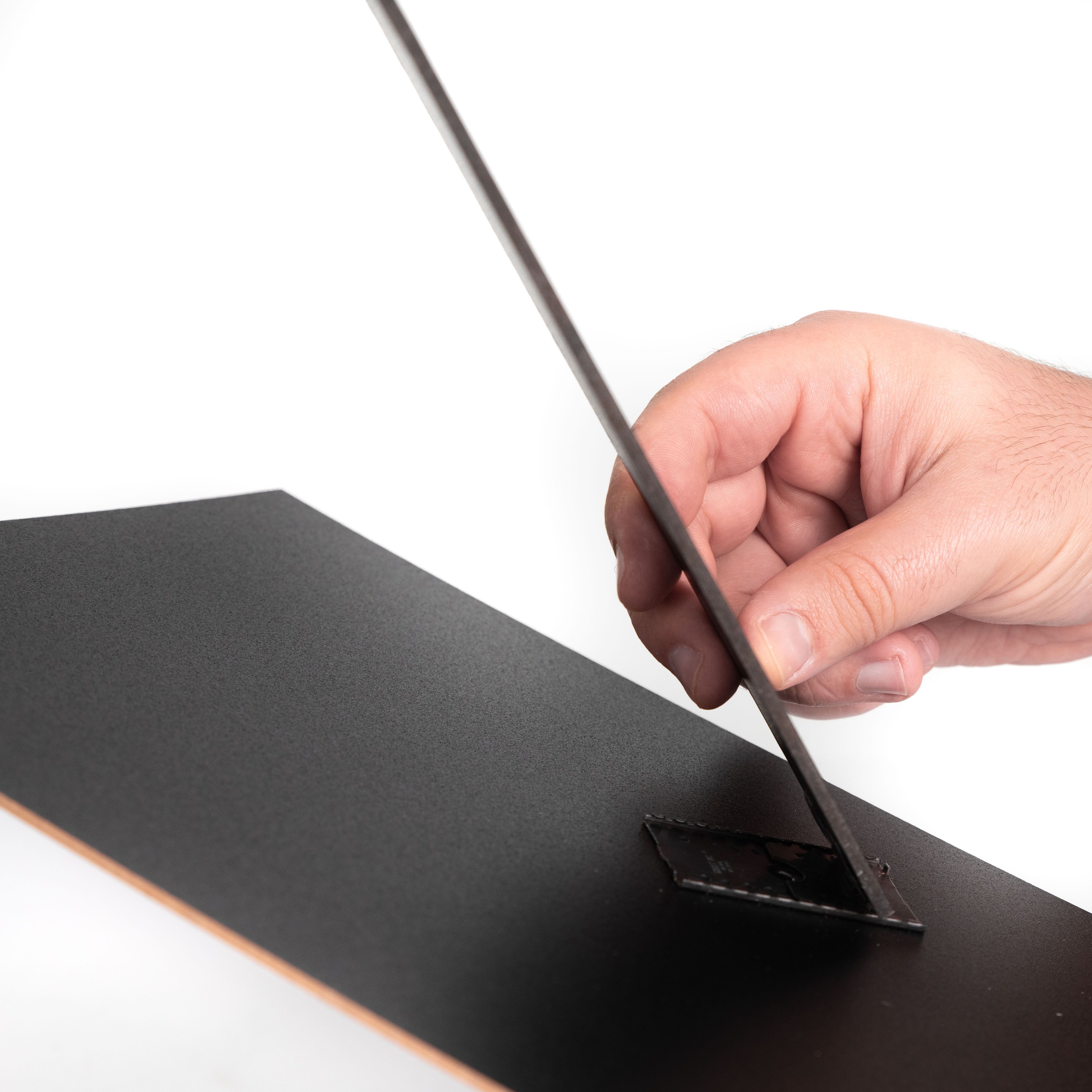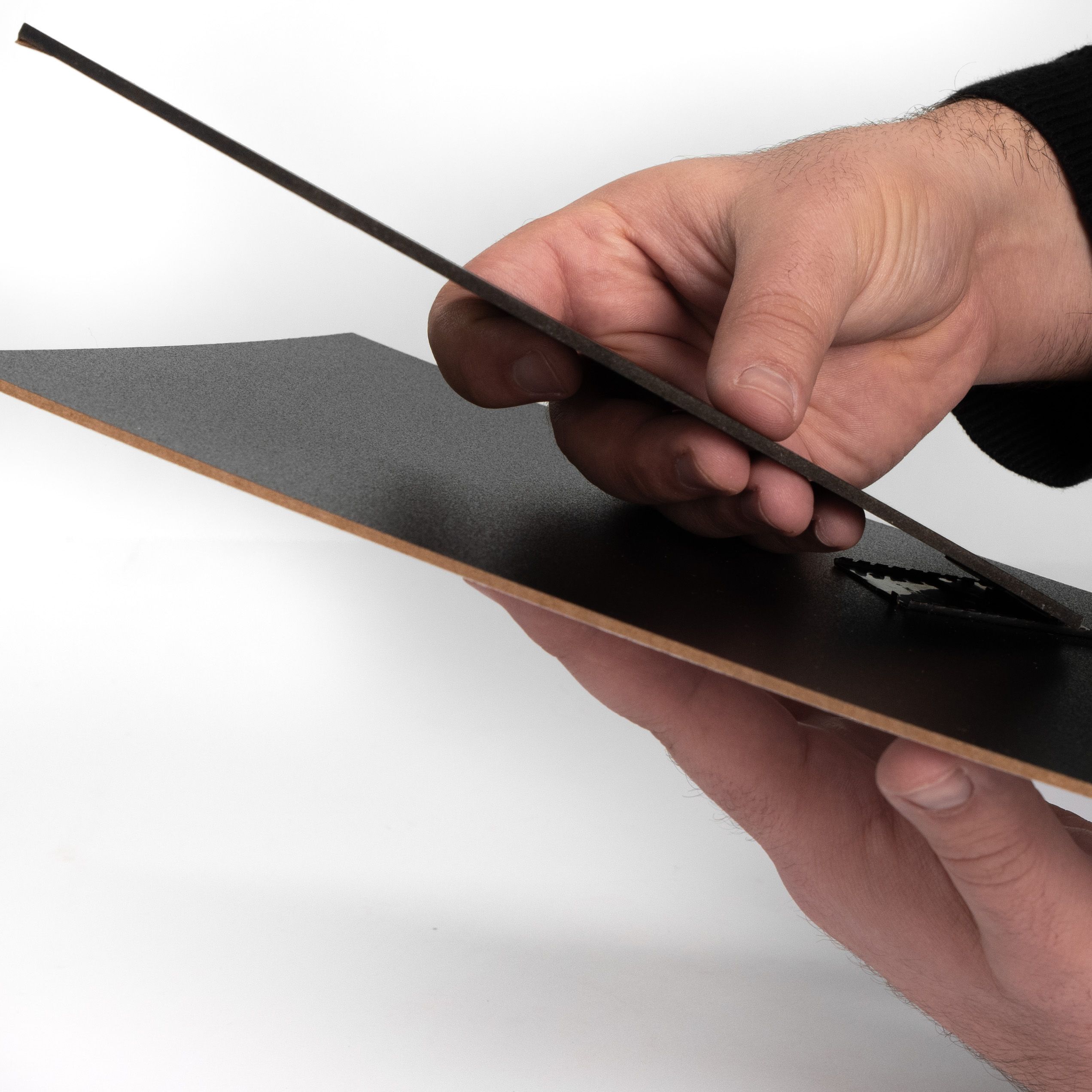 Il pannello, che va inserito sul retro della cornice, è in legno ecologico laccato nero per avere una maggiore versatilità con tutte le tipologie di cornice e colorazione.