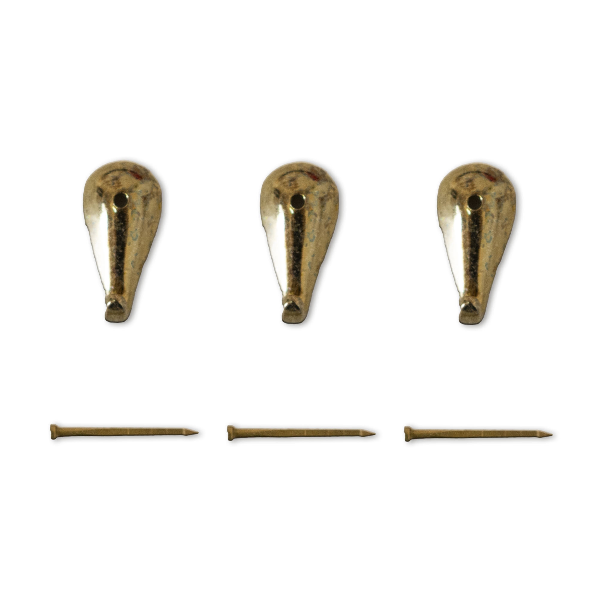 Kit composto da 3 ganci a forma di Goccia della serie Oro. Ogni singolo gancio misura 2,6x1,2 cm. Realizzato in metallo con finitura dorata, per avere un effetto più artistico. Utile per appendere sulla parete di casa il proprio quadro, specchiera o cornice portafoto. I nostri Ganci Per Quadro,Specchiera, Cornice, possono essere fissati su altri supporti per creare portachiavi o altri utensili. Si adatta allo stile del tuo arredamento per soggiorno,salotto,camera da letto,corridoio, ingresso, cucina o anche per ambiente non domestici. All'interno della confezione sono presenti i chiodini, per il fissaggio sulla parete o su qualsiasi tipo di superficie, come ad esempio il legno.