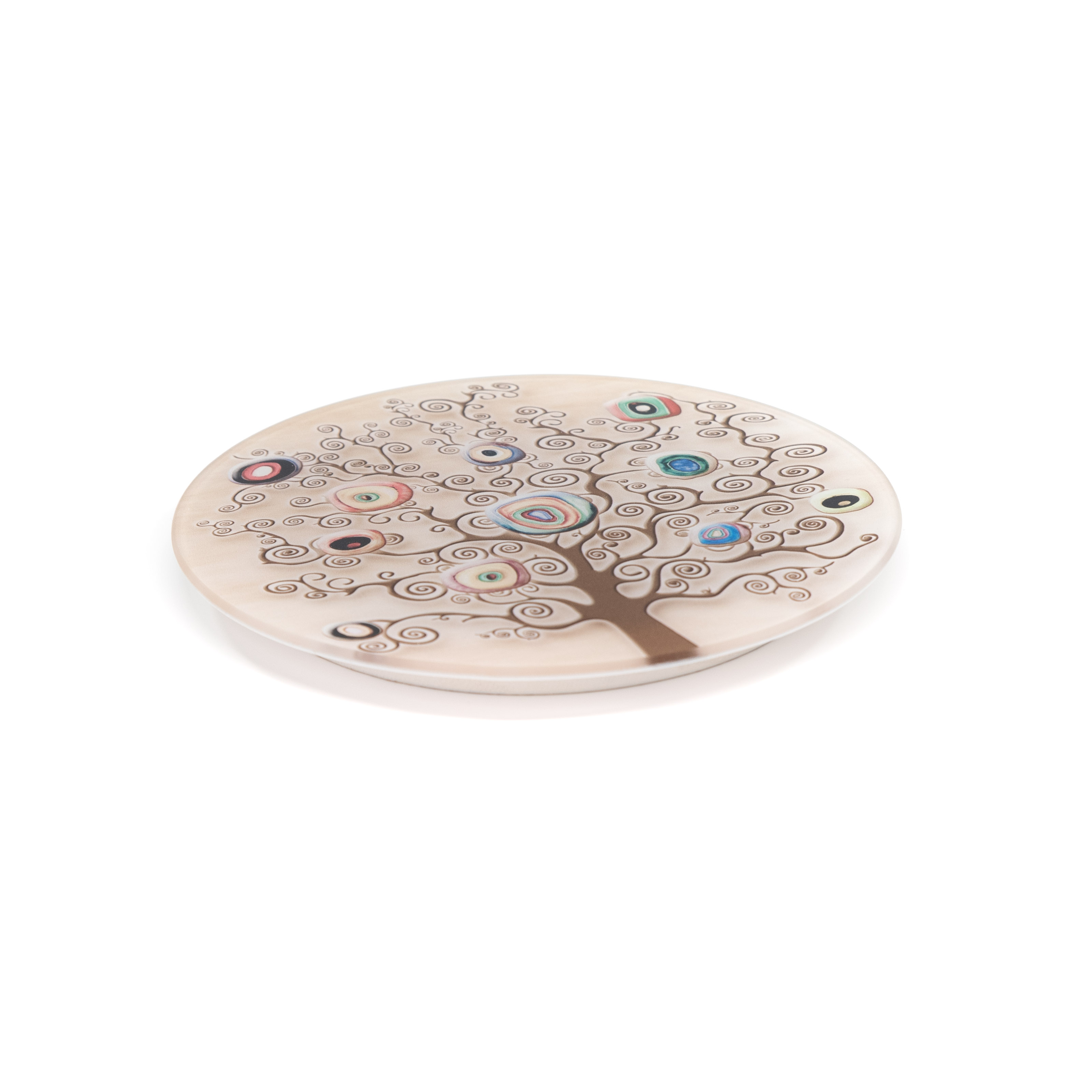 Pratico e utile Sotto pentola Rotondo in vetro temperato, da usare anche come sotto piatto, bicchiere, tazza, tegame. Scegli e completa tutte le decorazioni della collezione Albero della Vita, disponibili nelle varianti. Facile da pulire e lavare, e' realizzato in vetro temperato con Diametro di 21 cm, resistente e di ottima fattura, con spessore di 4 mm, decorato con stampe a colori di alta qualita' seguendo i decori della collezione. E' dotato di uno spessore di protezione come piedino sul retro, in legno ecologico spesso 10 mm verniciato bianco, sul quale è presente anche un foro per poter appendere il sottopentola e decorare la parete della cucina. Decora la tua tavola in casa per qualsiasi occasione, con molti stili e tematiche, utilizzalo anche in ambienti pubblici come bar, pizzeria, pub, ristoranti e altro. Prodotto realizzato completamente in Italia.