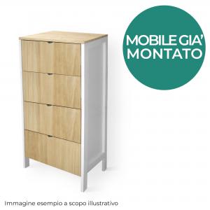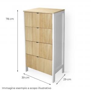 Cassettiera MOBILE ITALY dallo stile minimal in Legno di Paulownia antitarlo verniciato Bianco, con 4 Cassetti offre spazio per organizzare i tuoi ambienti con stile moderno, adattandosi ai tuoi ambienti domestici o lavorativi. Il mobiletto arrivera' gia' montato e pronto all'uso da posizionare in qualsiasi stanza della casa, camera da letto, corridoio, cucina, soggiorno, ingresso o anche ripostiglio, per mantere in ordine gli spazi e accogliere libri, scarpe, vestiti, articoli per la casa o da ufficio, potrete trovare un posto a tutto senza problemi grazie alla profondità del mobile di 29 cm. Questo mobile è versatile e può anche essere integrato perfettamente nell'arredamento esistente grazie alla sua semplicità e praticita' nell'uso. Il mobile e' dotato di 4 Cassetti estraibili e un ripiano superiore d'appoggio che vi permettera di avere una superficie o ripiano esterno con un top di colore BIANCO. Il prodotto e' costruito e assemblato completamente in Italia e le sue dimensioni totali sono 39 cm di larghezza frontale, 29 cm di profondita' e 78 cm di altezza.