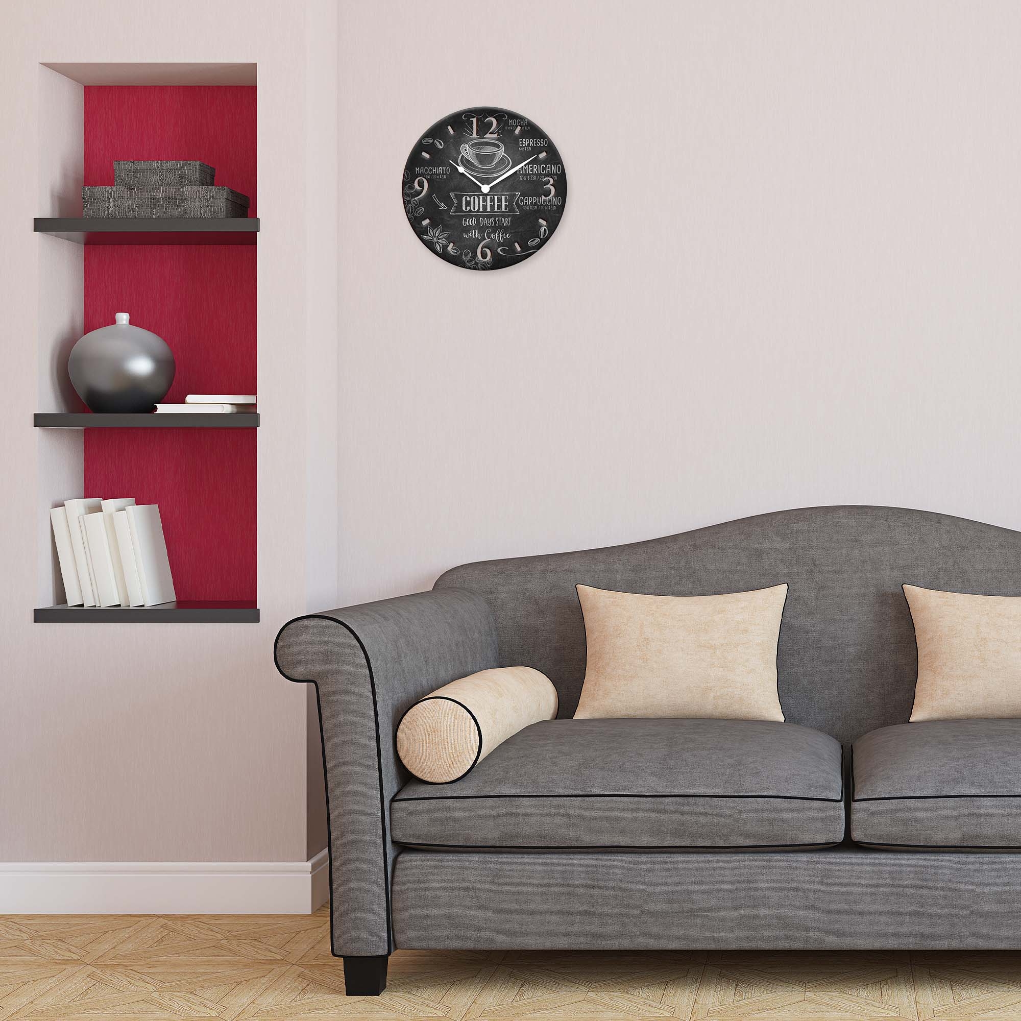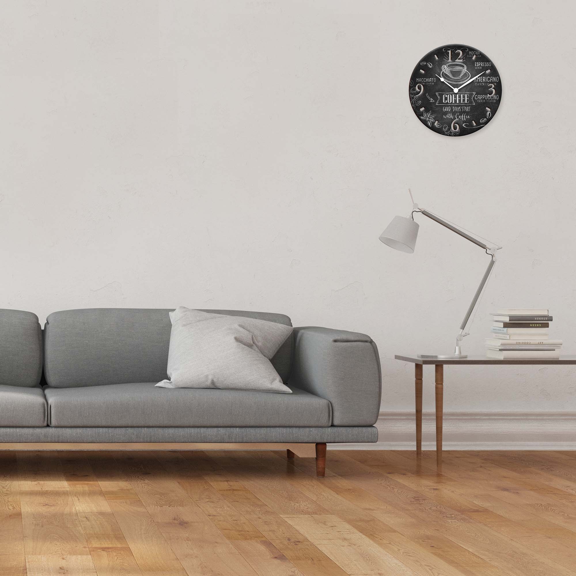 Il nostro orologio decorativo da parete e’ realizzato su pannello da 3 mm in fibra di legno rotondo, intagliato dal pieno ottenendo forme scavate con lo stile della linea, con stampa decorativa di alta qualita’. Complementi d'arredo che combinano funzionalita' e bellezza. Orologi da parete che uniscono la praticita' di controllare l'ora alzando lo sguardo, al piacere di vedere la tua parete illuminata da una piccola opera d'arte. Le misure disponibili dell'orologio sono 32x32 cm, per arredare la tua casa in modo elegante e originale. Adatto per tutti gli stili di casa, dalla camera da letto alla cucina, dal soggiorno alla sala da pranzo, ogni locale puo' essere impreziosito da un orologio di questo tipo, molto utile anche per ambienti di lavoro. Garanzia di raffinatezza Made in Italy. Orologio con movimento a quarzo alimentato a batteria, e' necessaria 1 batteria alcalina AA, non fornita.