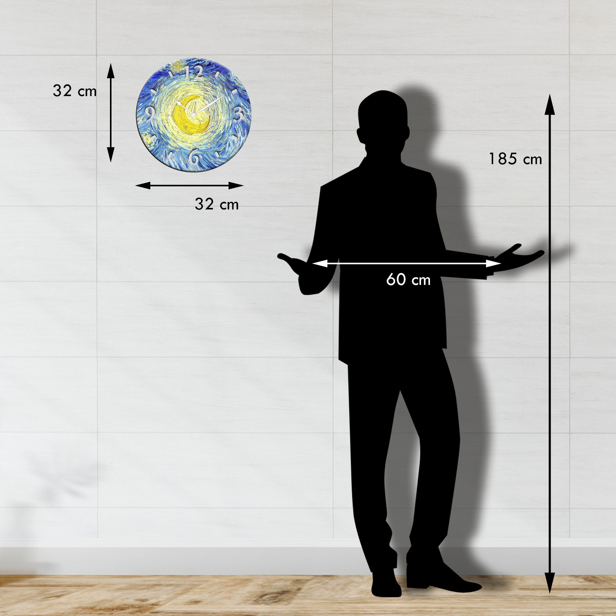 Orologio da parete lavorato in Legno 32x32 cm Notte Stellata -