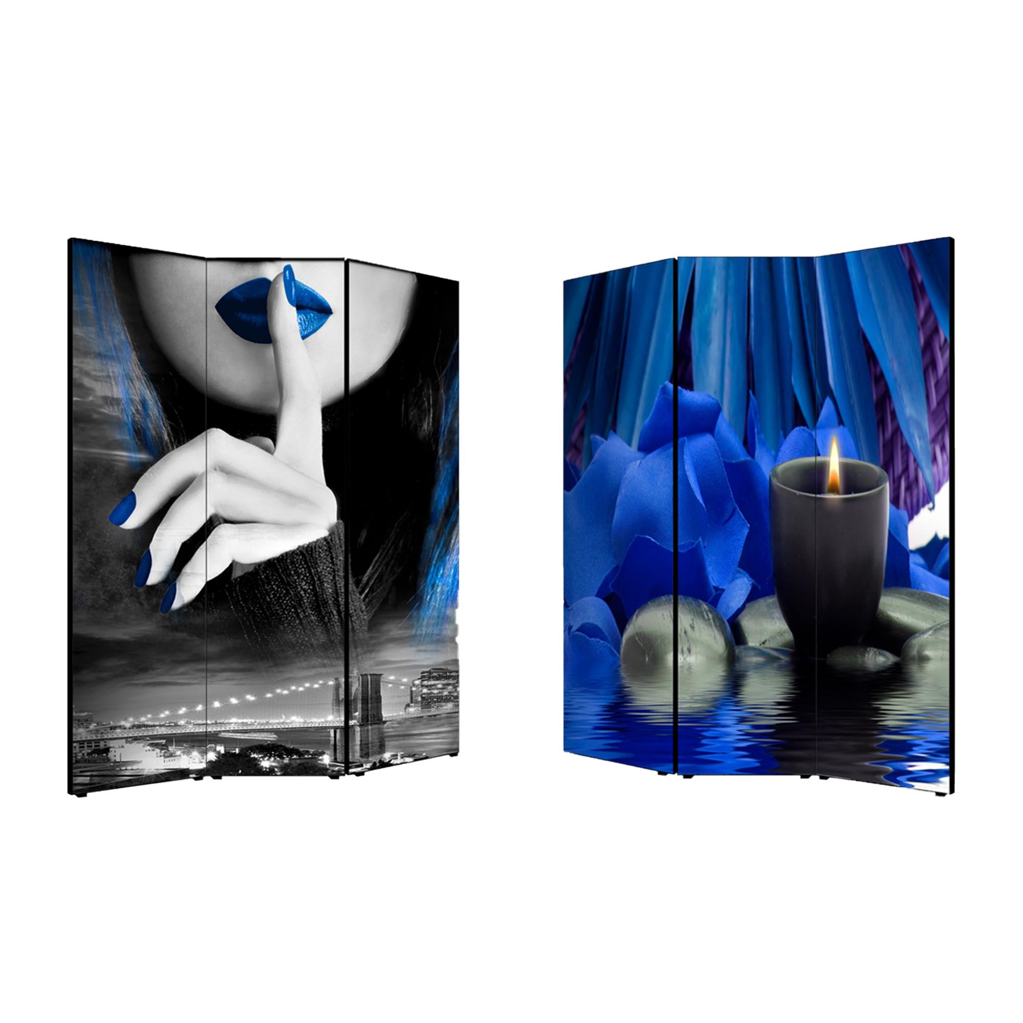 Separe' Divisorio Paravento BLUE 176x135,6x3,2 cm 3 Ante in Legno con Tela stampata Fronte Retro bifacciale -
