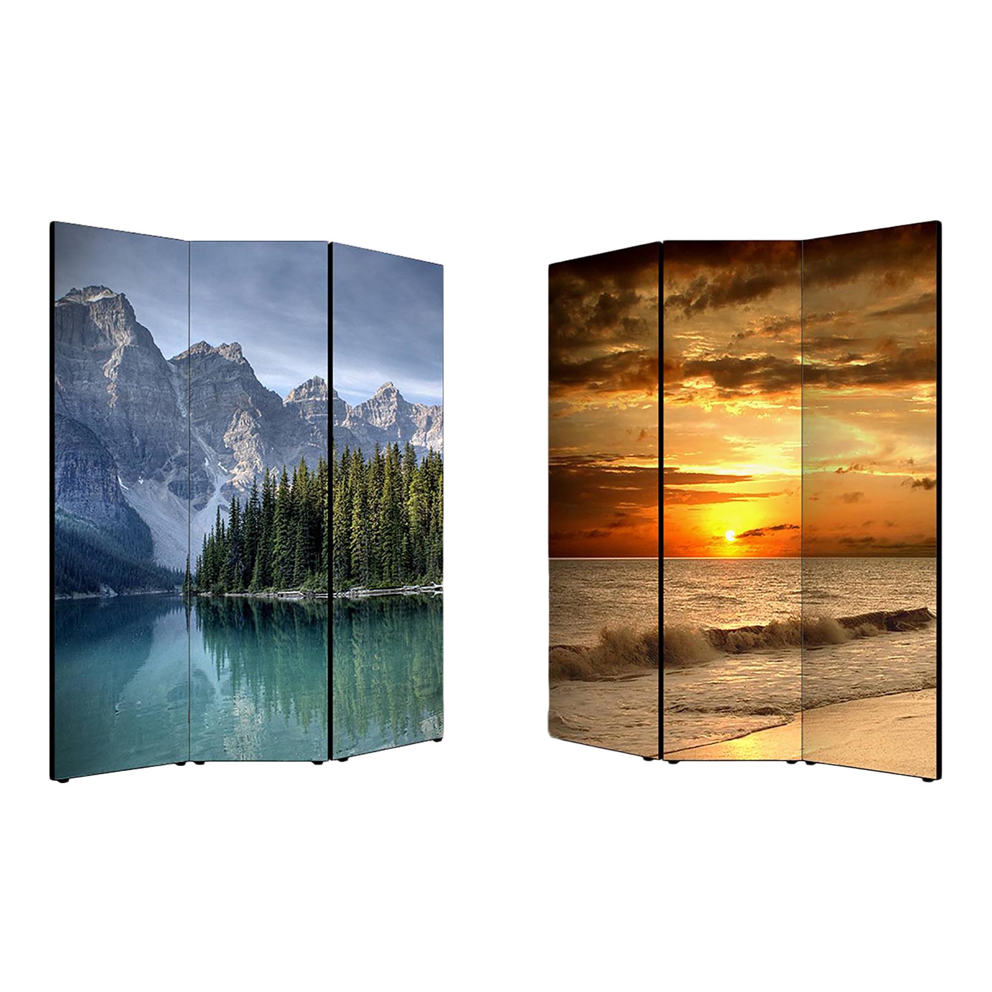 Separe' Divisorio Paravento PAESAGGISTICO 176x135,6x3,2 cm 3 Ante in Legno con Tela stampata Fronte Retro bifacciale -