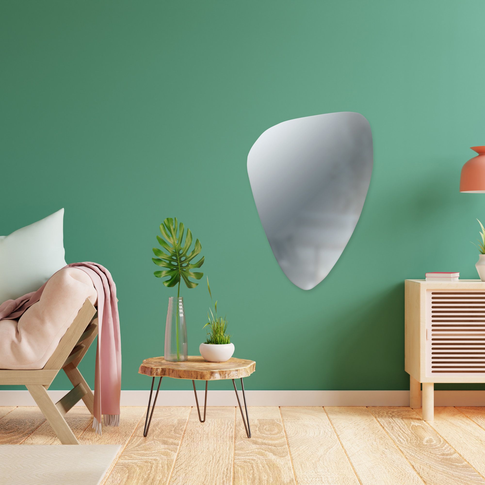 In particolare, il design organico degli specchi a muro si distingue per le sue forme irregolari e sinuose, che rompono la monotonia delle linee tradizionali per abbracciare un'estetica futuristica e anticonvenzionale. La forma irregolare, ispirata al design organico, richiama una goccia o una macchia fluida, conferendo al prodotto un carattere unico e moderno.