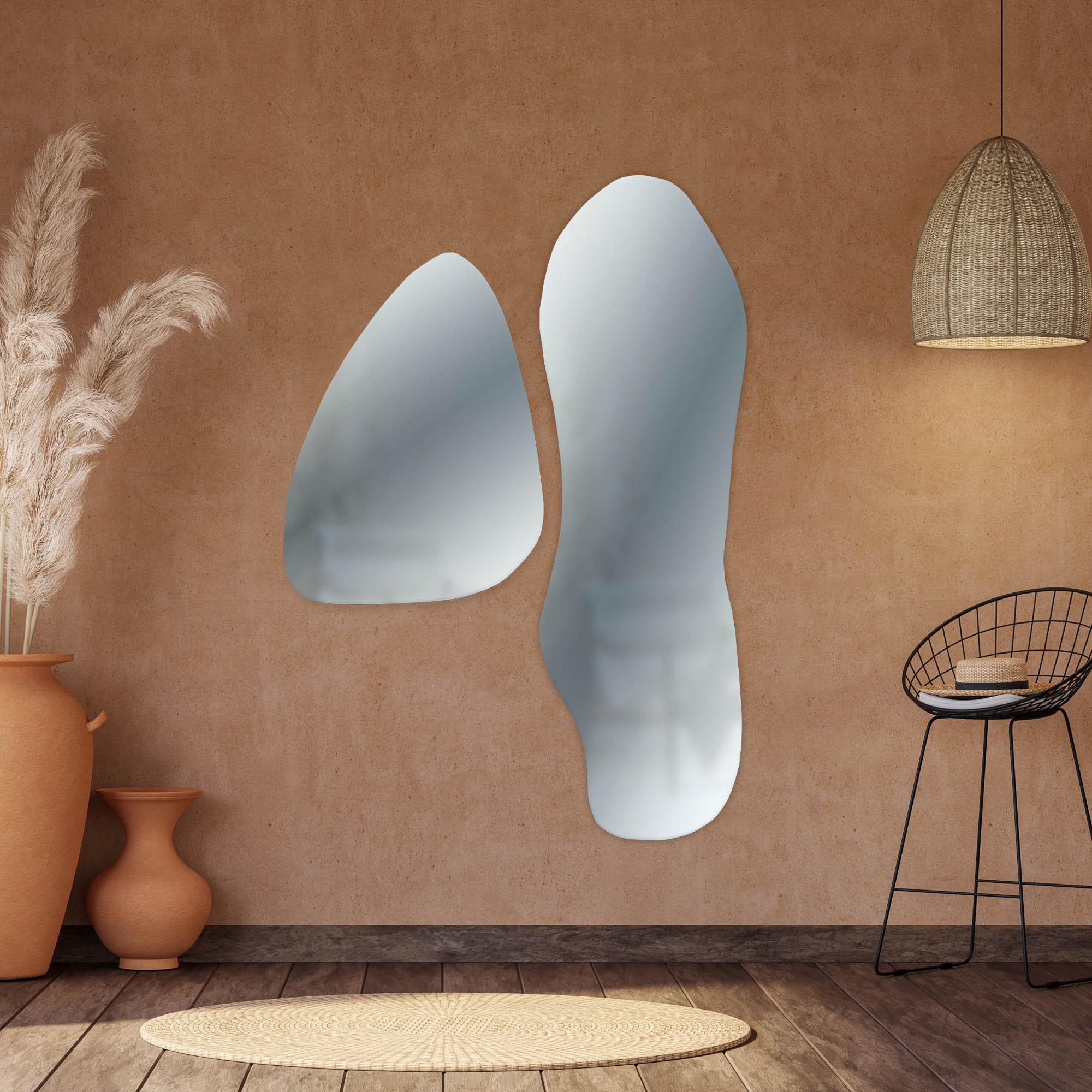 Gli specchi ondulati da parete sono molto più di un semplice complemento d’arredo. Grazie alla loro capacità di riflettere la luce naturale o artificiale, illuminano gli spazi, donano profondità agli ambienti e trasformano qualsiasi stanza in un luogo visivamente più ampio. Oltre alla loro funzionalità pratica, gli specchi organici arricchiscono le pareti vuote con grande personalità, risultando ideali anche per mini appartamenti dove lo spazio è prezioso.