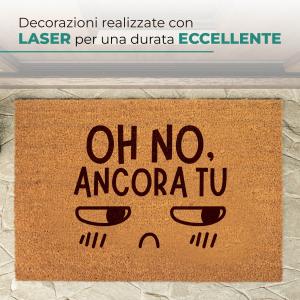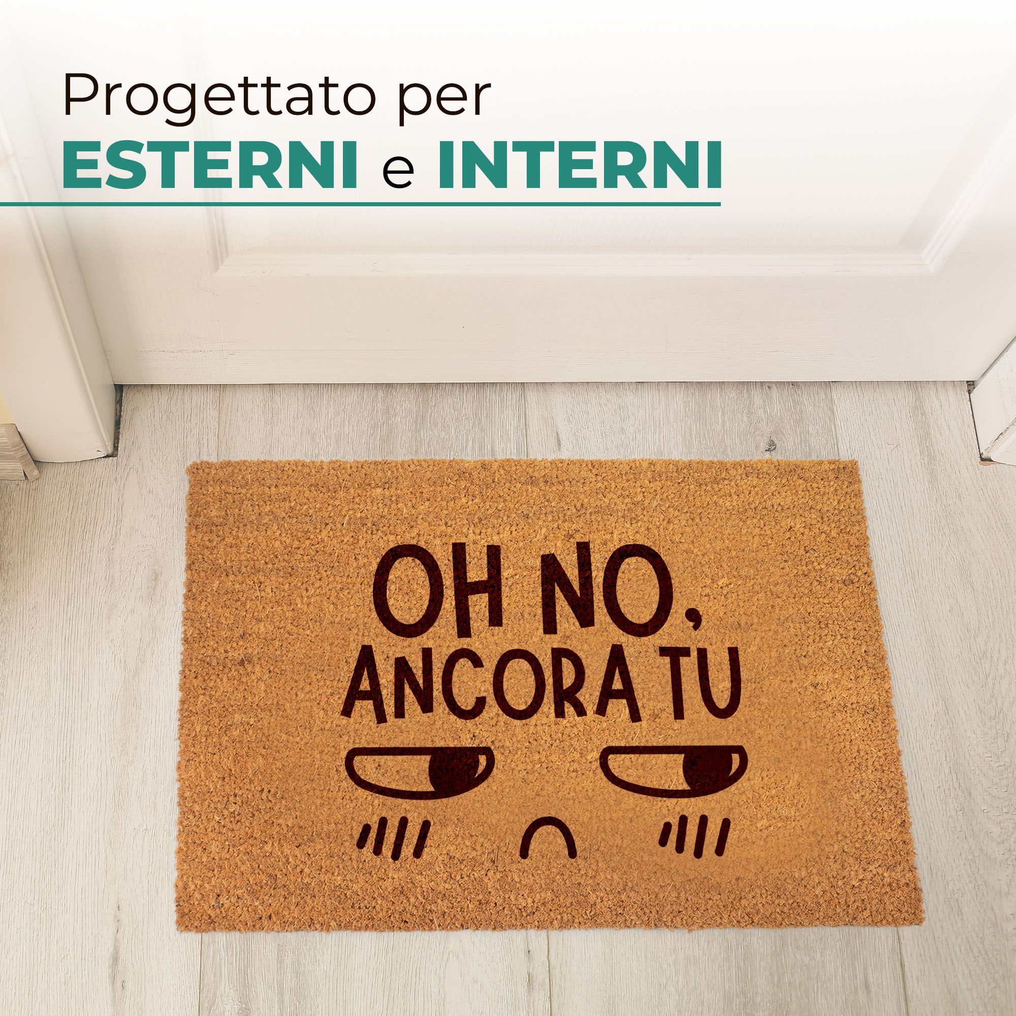Trasforma il tuo ingresso in un biglietto da visita accogliente e funzionale con il nostro zerbino in fibra di cocco naturale 100% con retro antiscivolo in pvc. Il design è uno dei punti di forza: le decorazioni incise al laser, originali e permanenti con disegni e testi che rendono questo zerbino non solo un accessorio pratico, ma anche un complemento d’arredo che dona personalità e stile alla tua casa. Scegli tra grafiche moderne, fantasiose o classiche, pensate per sorprendere i tuoi visitatori con un messaggio di benvenuto sempre unico.. Come la scritta “Oh no, ancora tu”: perfetta per chi ama l’umorismo e vuole un ingresso divertente.
