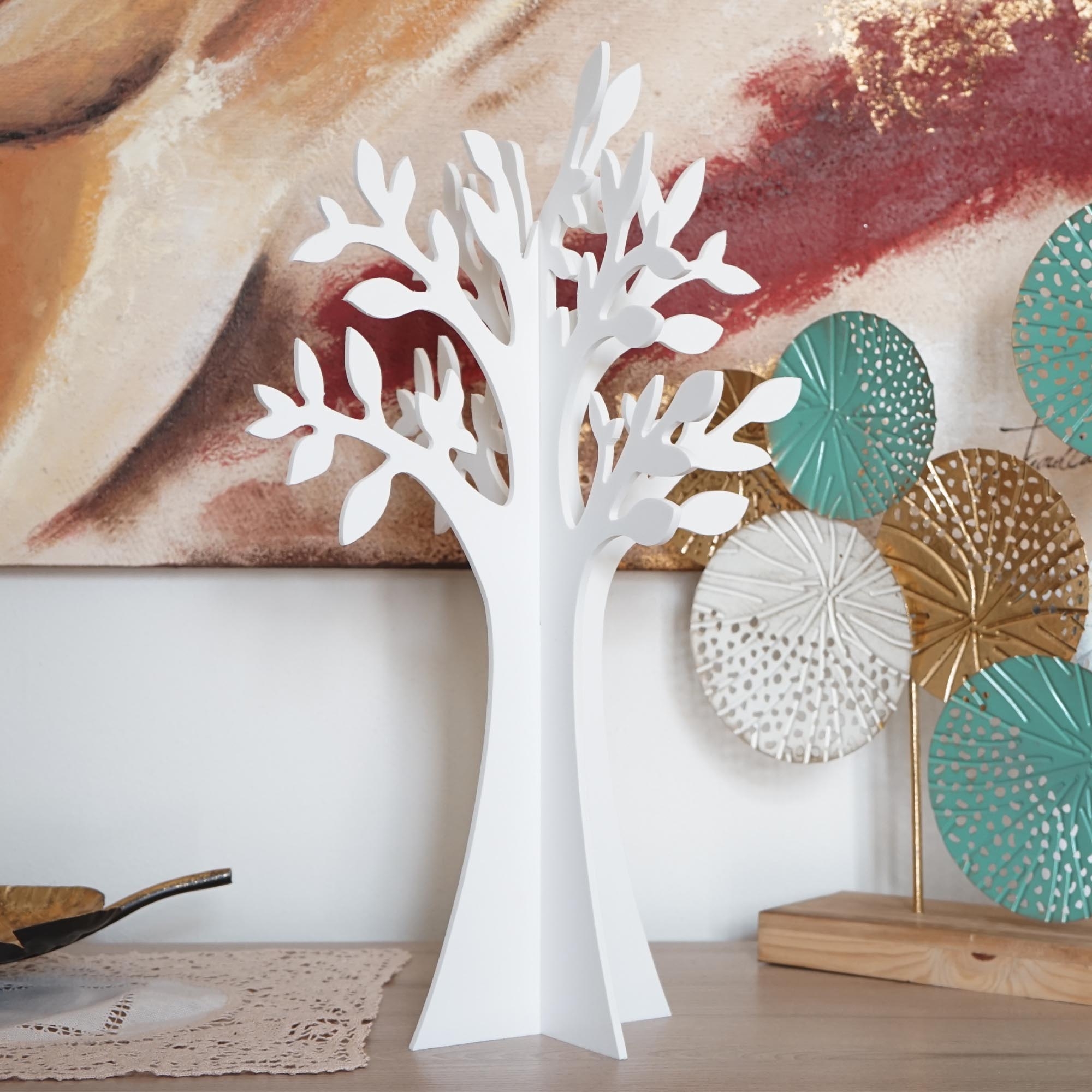 Espositore a forma di Albero dal colore Bianco, un utile complemento d’arredo per i tuoi ambienti domestici o lavorativi. Ideale da utilizzare come porta gioielli e oggetti preziosi come collane, bracciali per la tua camera da letto o bagno. Puo’ essere utilizzato come pratico segnaposto, centrotavola, tableau mariage o bomboniera per riunioni di lavoro, cena in famiglia per Natale, eventi, Matrimonio, adatto anche come supporto per appendere le tue foto. Grazie alla sua versatilita’ nell’utilizzo l’espositore puo’ essere decorato in autonomia, fai da te a casa, secondo le tue idee o esigenze. L’albero puo’ essere dipinto e verniciato per renderlo piu’ personale e adatto allo scopo, partendo dalla base bianca fornita. La scultura puo’ essere posizionata in qualsiasi ambiente come soggiorno, ingresso o salotti ed anche in negozio o laboratorio a lavoro, come espositore in vetrina. Ha una struttura molto solida composta da 2 pezzi con base di supporto, disponibile nelle varianti in tante dimensioni: con le misure 40x60 e 54x80 cm la struttura e’ in legno, mentre 34x50, 28x42 e 20x30 cm la struttura e’ in Forex un materiale plastico resistente.