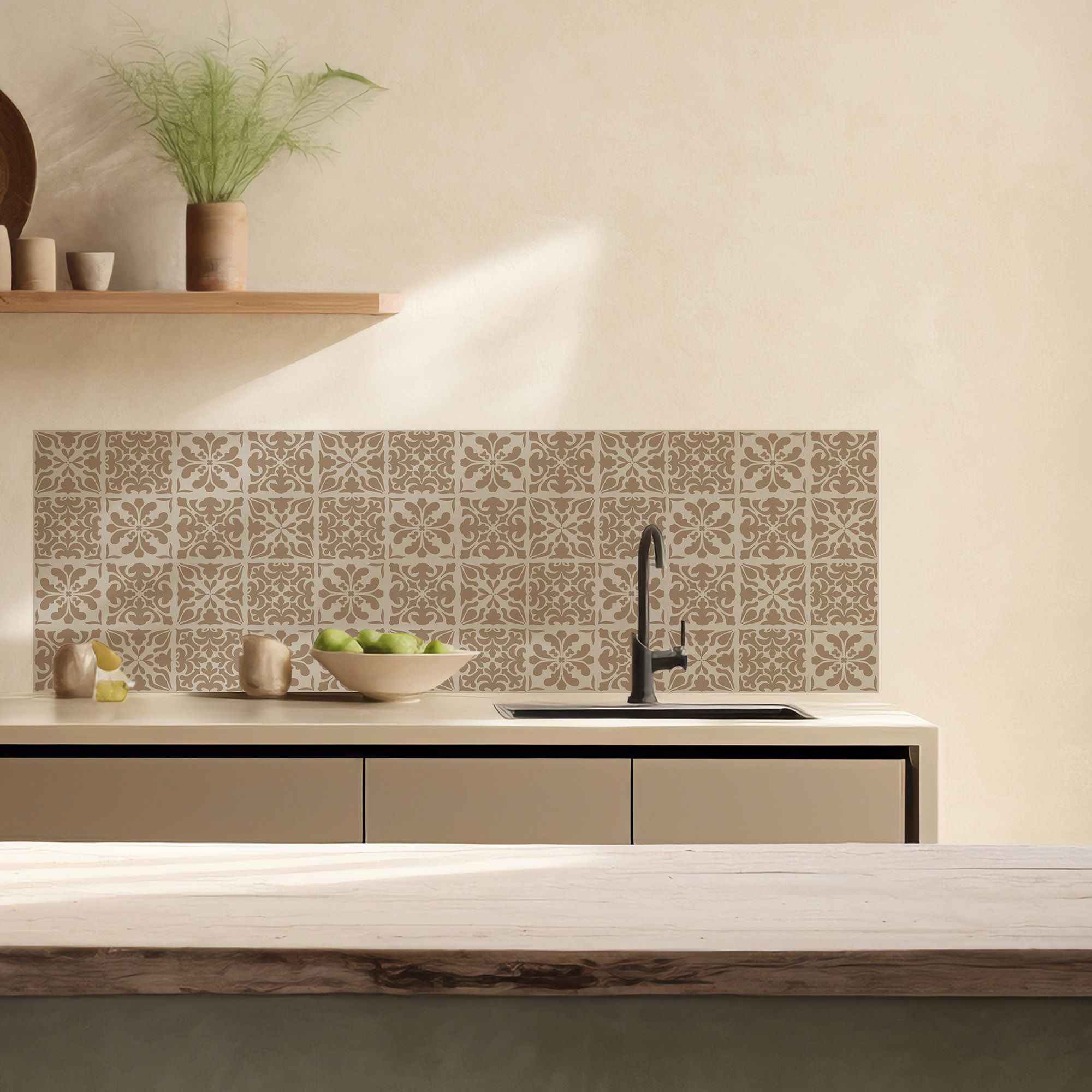 Disponibile in sei dimensioni diverse, il paraschizzi decorato in stile ceramica è perfetto per adattarsi a ogni esigenza di stile. Il pannello cucina, con uno spessore di soli 2 mm, è altamente personalizzabile: può essere tagliato per adattarsi perfettamente alla tua parete, garantendo una finitura impeccabile.