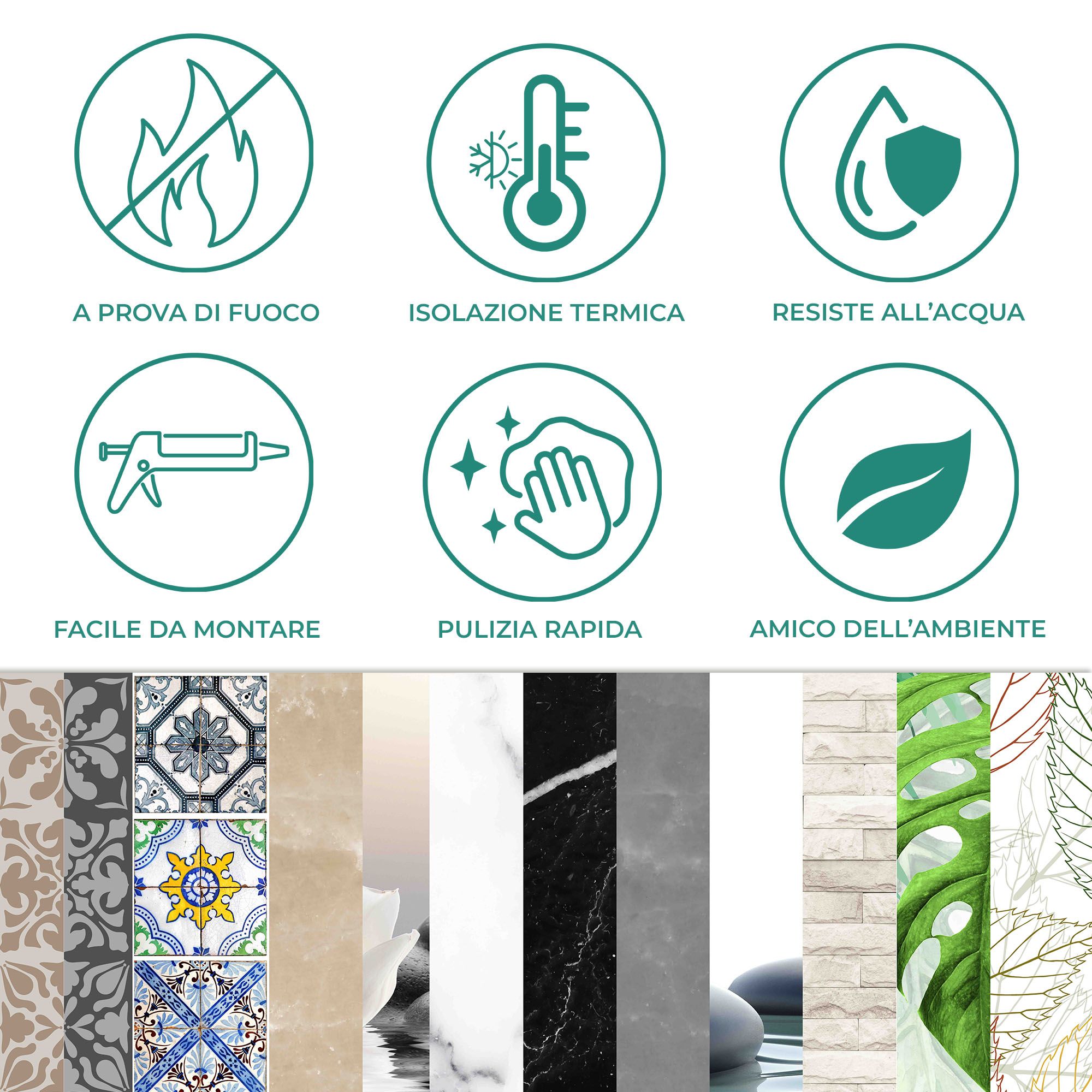 Il paraschizzi cucina è una soluzione che combina estetica e praticità per arricchire il tuo ambiente culinario. Ideale per proteggere le pareti da calore, schizzi, macchie, residui di cottura e acqua, questo pannello per cucina si distingue anche per il suo design ricercato.