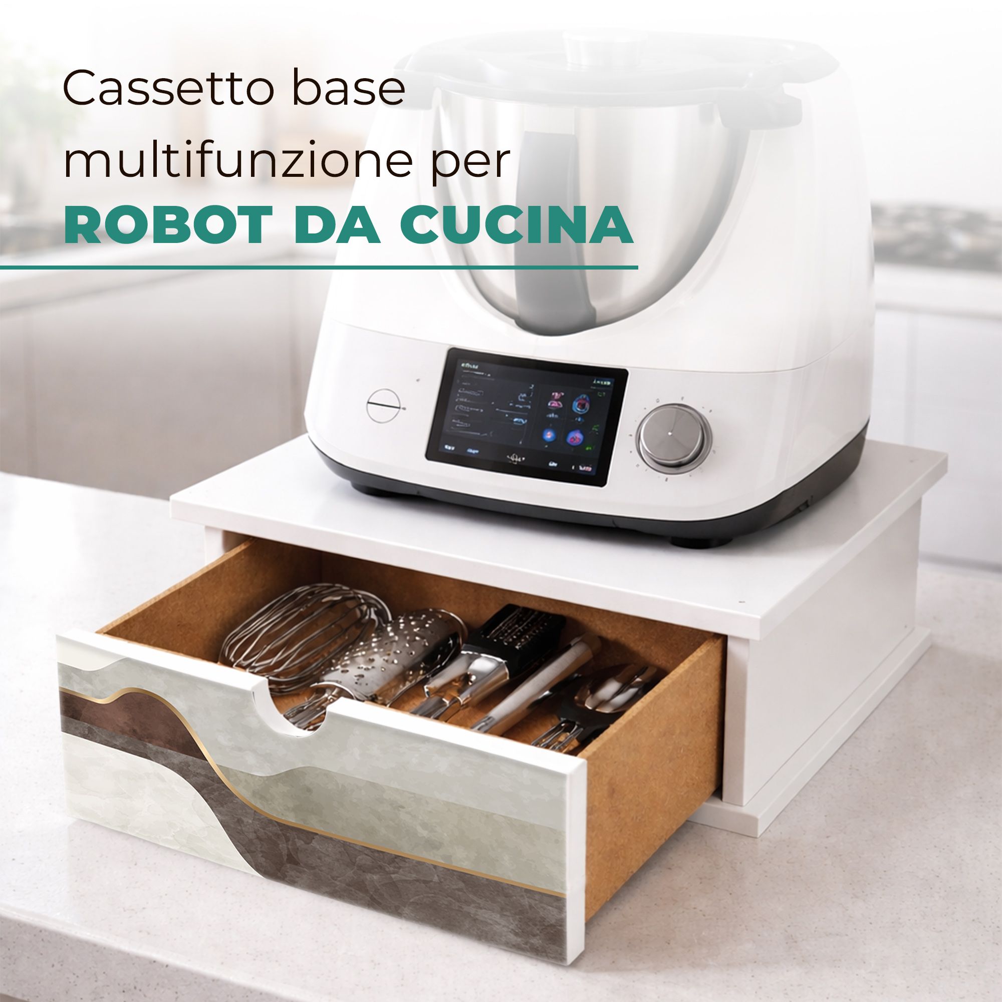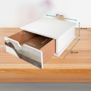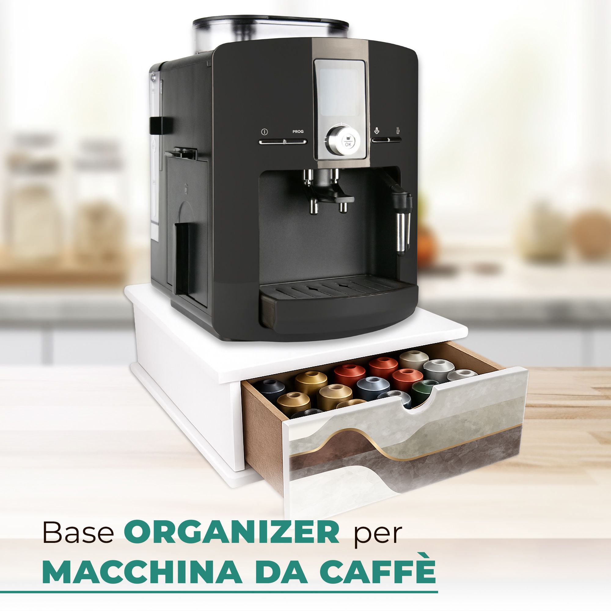 Le dimensioni esterne compatte di 27x33x11 cm permettono di ottimizzare lo spazio sul piano cucina o sulla scrivania. Il cassetto estraibile offre un vano interno di 21,3 x 29,5 x 8,3 cm, ideale per organizzare capsule, cialde, accessori caffè ma anche utensili da cucina, piccoli oggetti per la casa o articoli di cancelleria.
