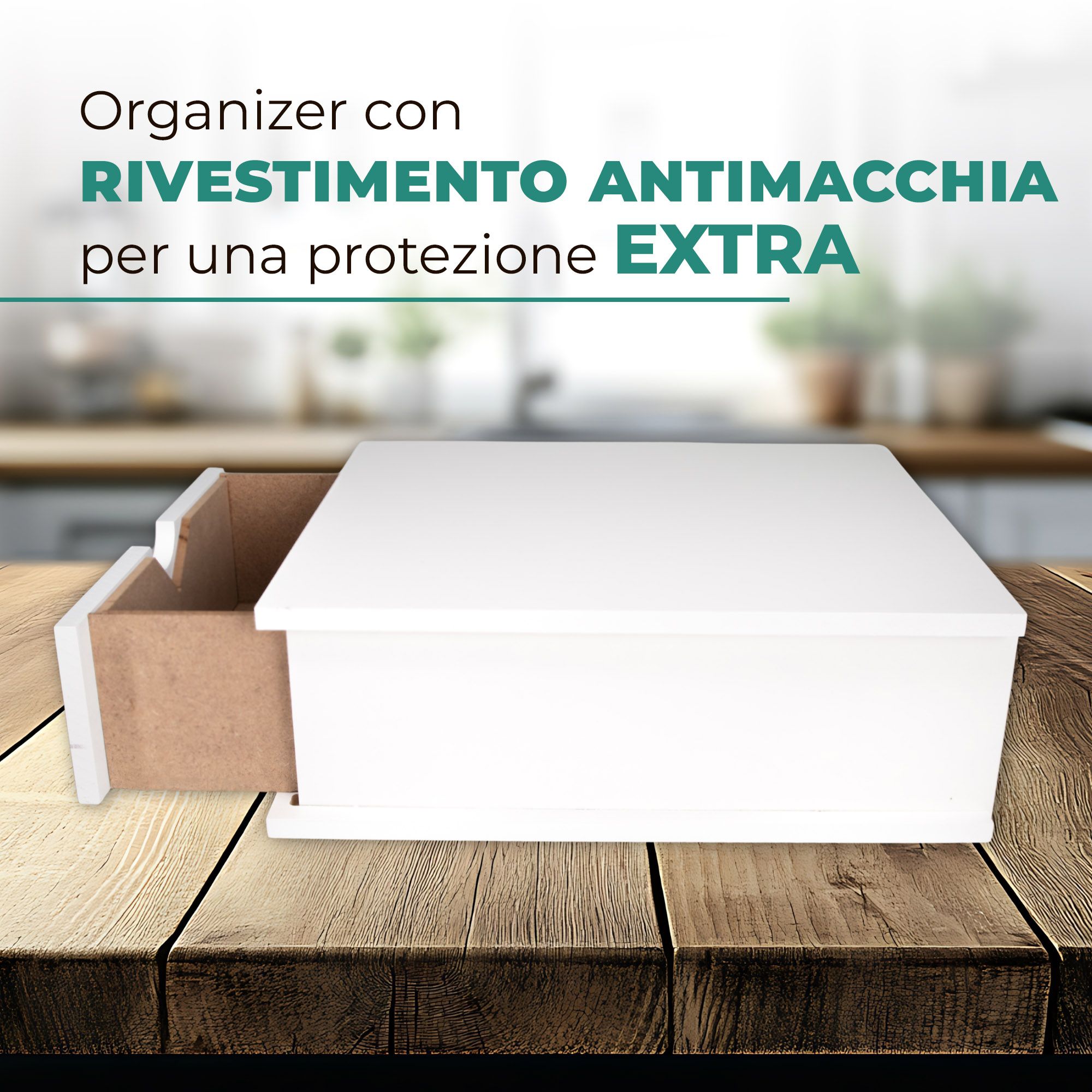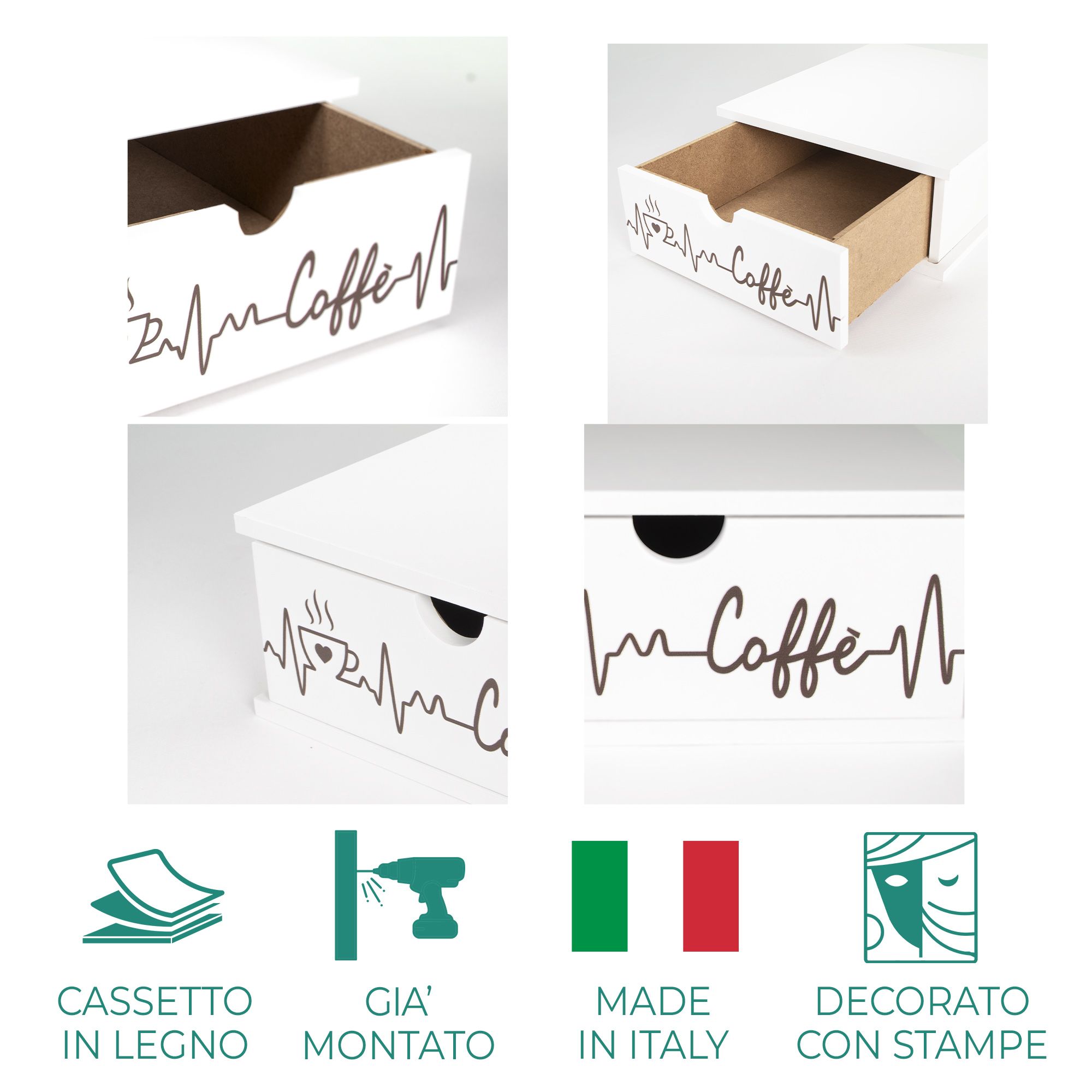 Lupia - Cassetto Porta Cialde Caffè e Porta Capsule 27x33x11 cm FLYER - A, Contenitore Organizer per Caffè, Tè, Tisane e Zucchero, Angolo Bar in Legno Bianco Antimacchia per casa e ufficio -