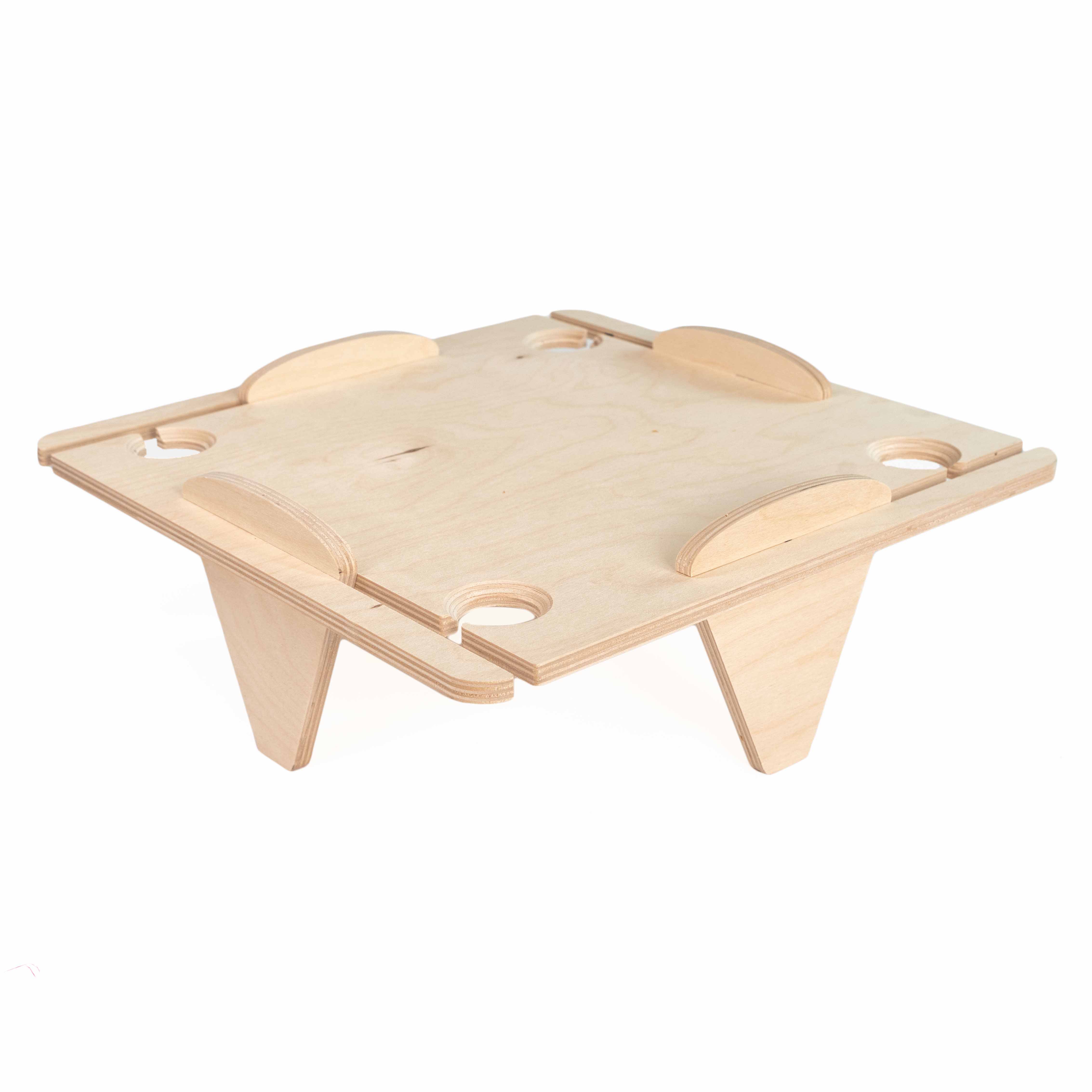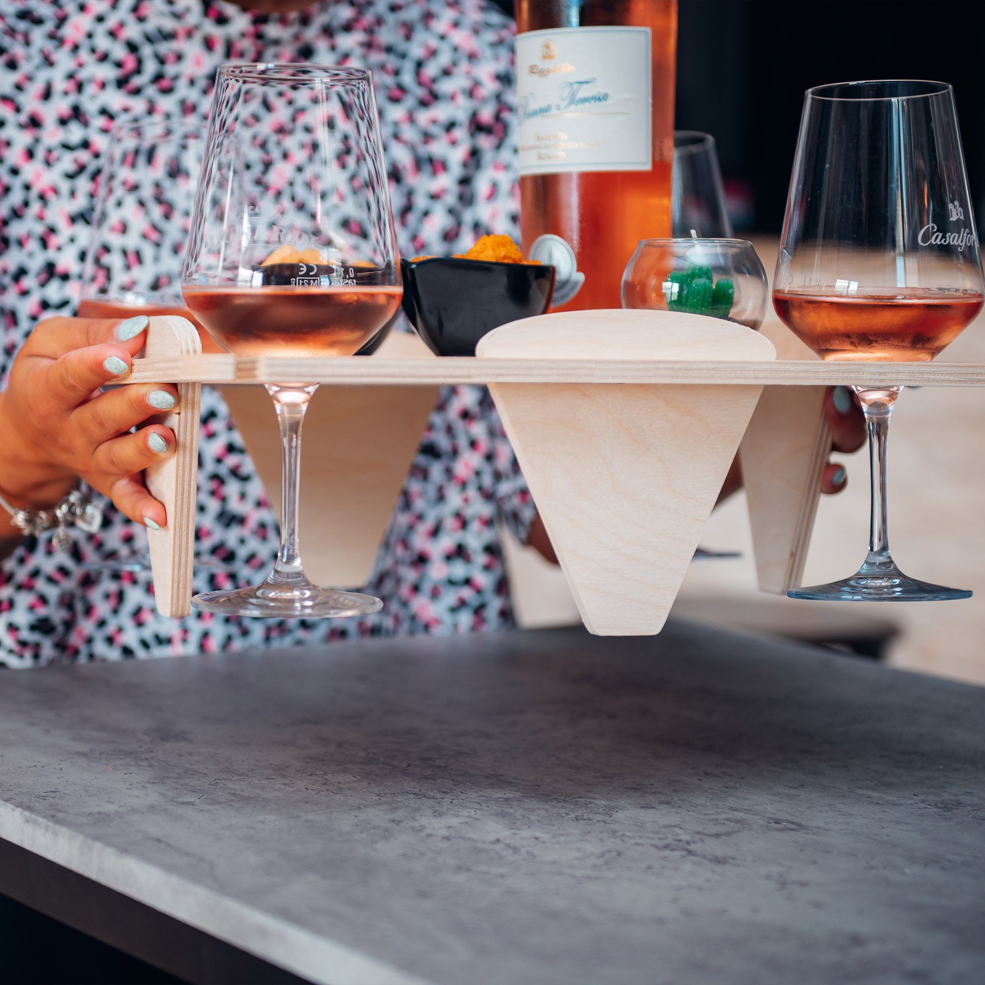 Vassoio in Legno di Betulla con piedi d'appoggio per la tavola, dalla forma quadrata con spessore di 9 mm, ideale per servire facilmente 4 Calici di Vino, Spumante, Prosecco, Spritz o di altri cocktail e drink per Aperitivo. Un utile accessorio che grazie alla sua struttura ergonomica garantisce un’ottima praticità e facilità d’uso. Il grande piano centrale, presente tra i quattro fori per inserire i calici, permette di poggiare, maneggiare e trasportare comodamente qualsiasi prodotto o ciotola. Realizzato completamente in Italia, grazie alla sua costruzione naturale ed ecologica, oltre ad essere un utile accessorio della tua cucina e per eventi o party nella tua casa, diventerà anche un utensile bello da vedere e dal design ricercato. È adatto anche come accessorio in tutti i bar, ristoranti, pub, pizzerie. Può essere utilizzato per poggiare i prodotti appena cotti da tutti i tipi di forni casalinghi e a legna, fornetti elettrici, pietre refrattarie, cuoci pizza e accessori di panificazione. La forma è originale e lo rende unico nel suo genere, le sue dimensioni sono 37,5x37,5 cm con un'altezza di 12 cm.