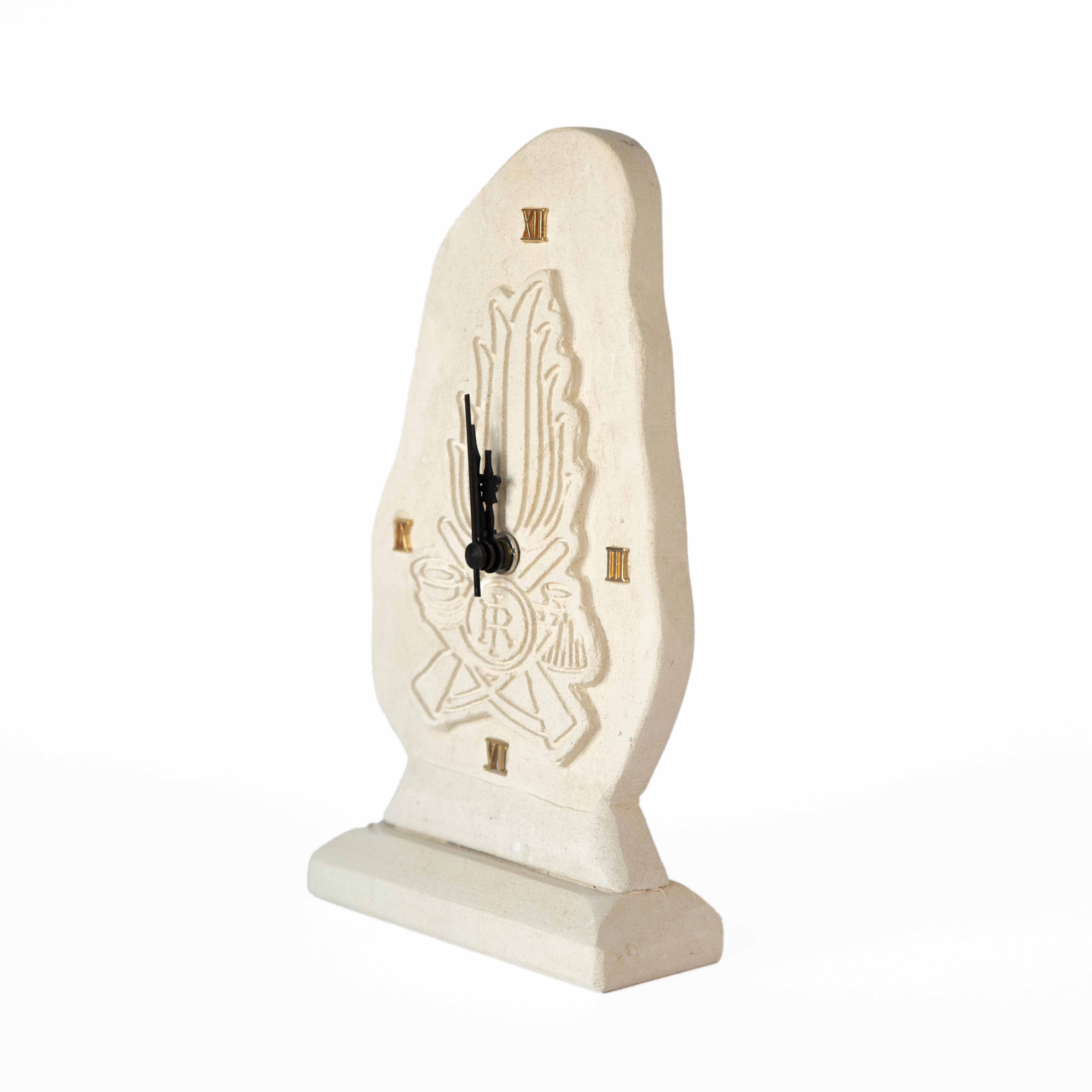 Orologio Crest Guardia di Finanza Scudetto in pietra leccese interamente realizzato a mano sia sulla parte frontale che sulla parte posteriore. Il nostro prodotto e' interamente artigianale e utile come Decorazione, Arredamento per i vostri ambienti di casa sia moderni che classici, come soggiorno, camera da letto, cucina, utile anche per il vostro ufficio. Bomboniera elegante e originale. Il materiale di cui e' costituito e' la Pietra Leccese o 'leccisu' in Salentino e' una pietra calcarea risalente a circa 21 milioni di anni fa dai colori e strutture unici. Scopri tutti i nostri prodotti come le nostre lampade a nido d'ape o spazzolate, i nostri orologi e le nostre bellissime sculture in pietra. Dimensioni: 15x5 cm Altezza 23 cm
