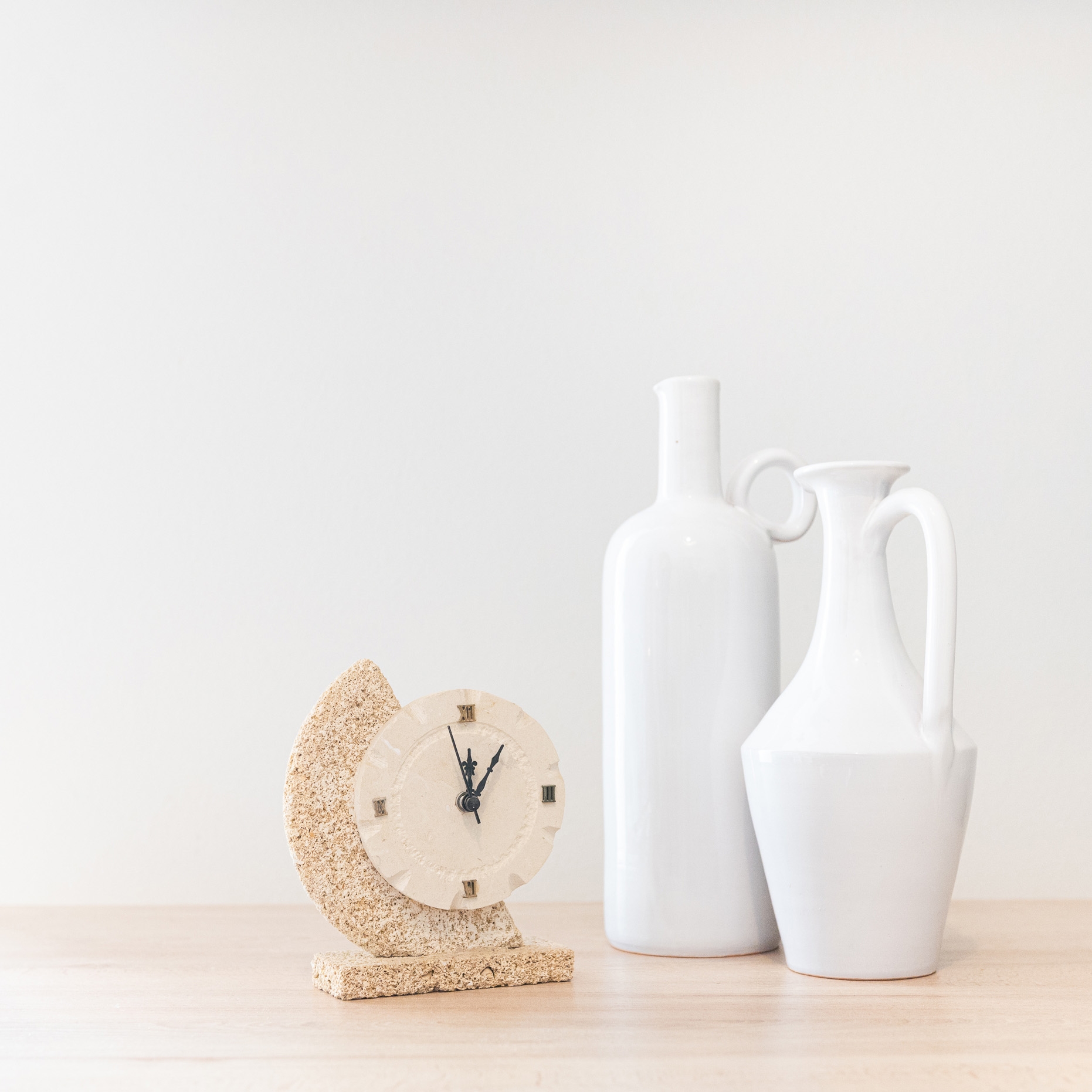 Orologio base con MEZZALUNA scultura decorazione bomboniera in Carparo e Pietra Leccese salentina misure 17 x 17 cm -