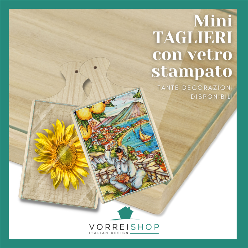 Che sia in tavola, in cucina o in qualsiasi angolo della tua casa, i nostri prodotti assicurano sempre grande creatività, originalità. Ta i tanti oggetti per la tua casa o perfetti come simpatica idea regalo, presentiamo i Mini taglieri stampati. Tagliere in legno VORREISHOP con Vetro sulla zona di appoggio decorato con stampe a colori, permettono di decorare simpaticamente la tua ...