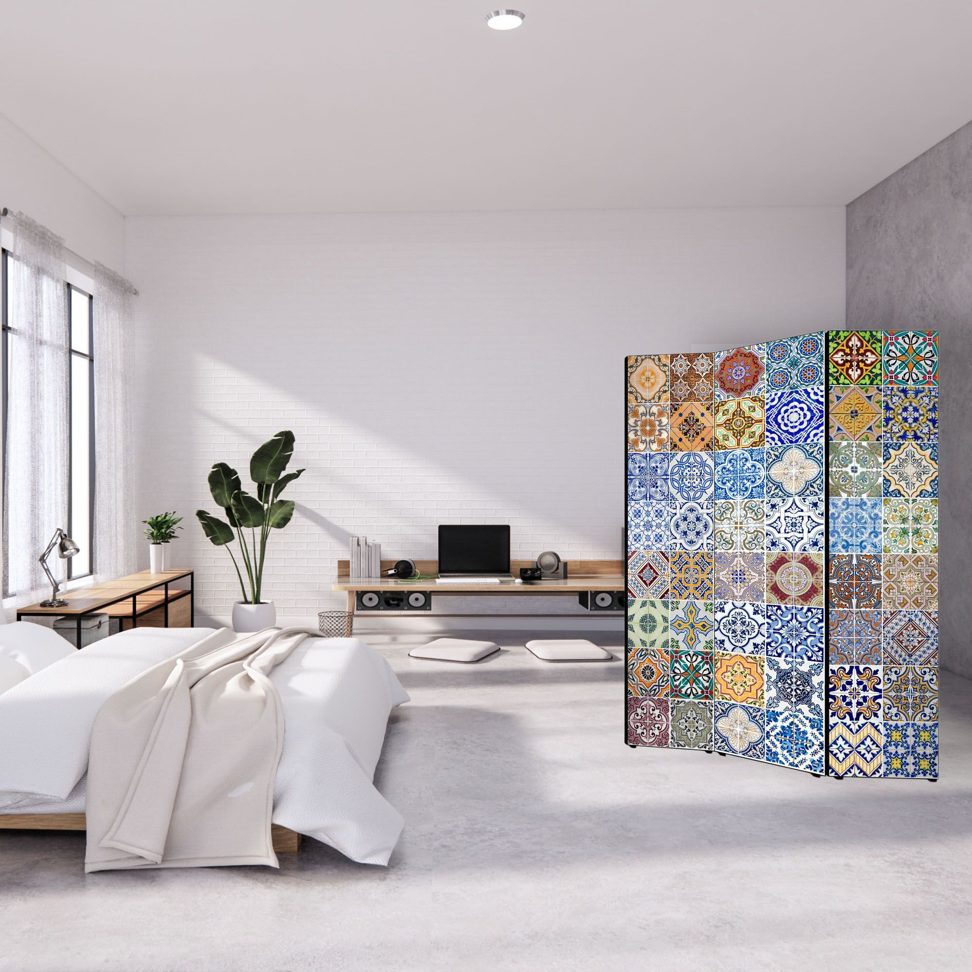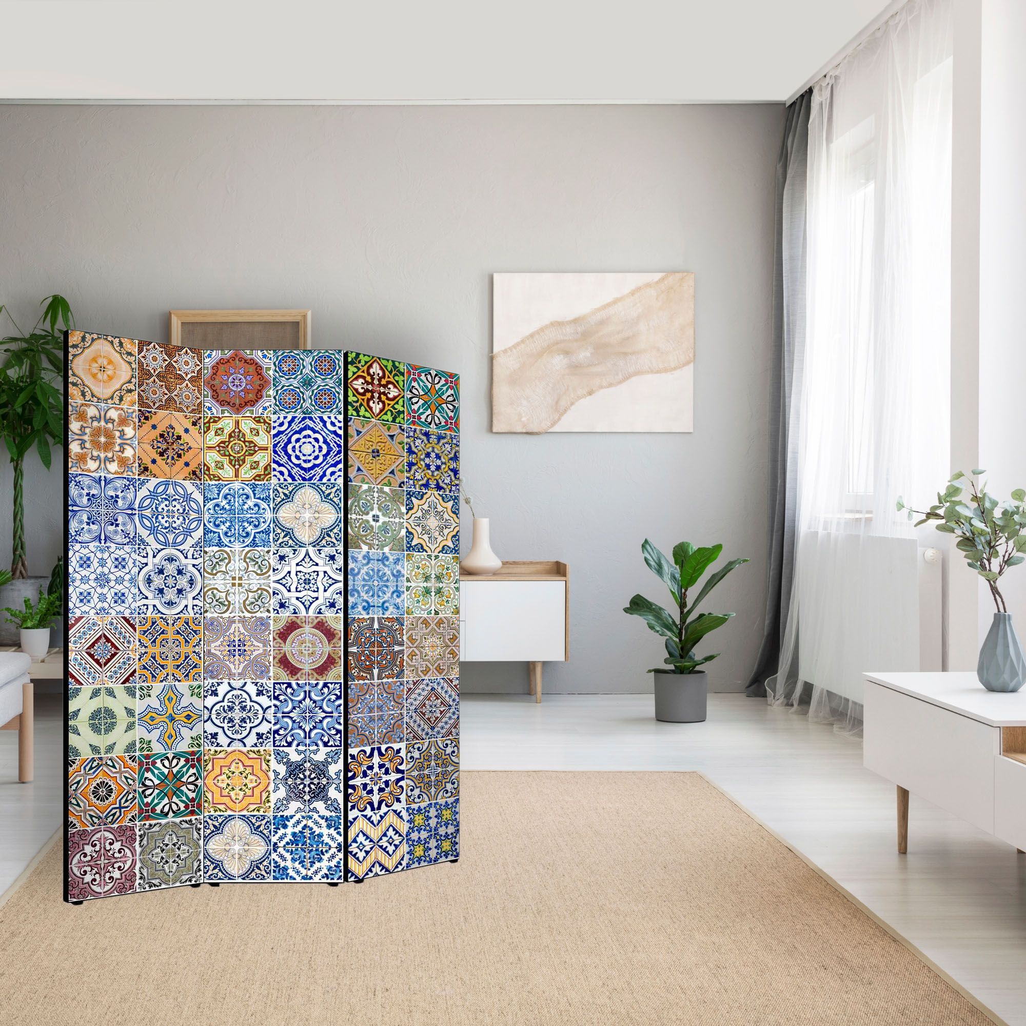 Separe' per interni, Divisorio 135,6 x H 176 x P 3,1 cm AZULEJOS COLOR paravento 3 Ante in legno con Tele stampate fronte retro Soggetto unico -