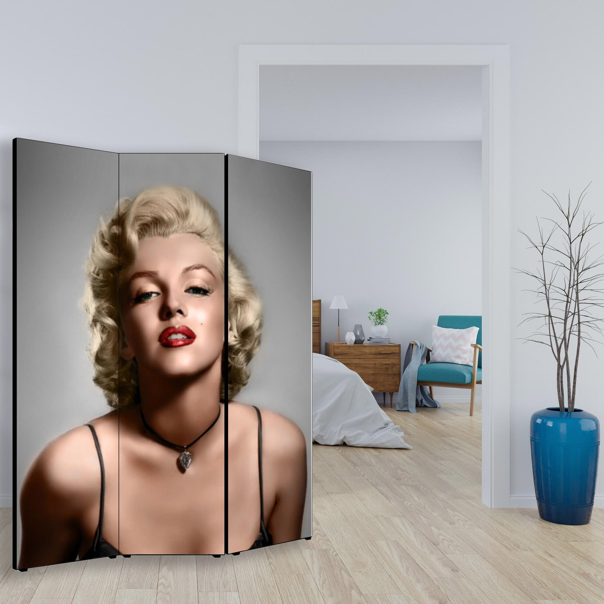Separe' per interni, Divisorio 135,6 x H 176 x P 3,1 cm MARILYN COLOR paravento 3 Ante in legno con Tele stampate fronte retro Soggetto unico -