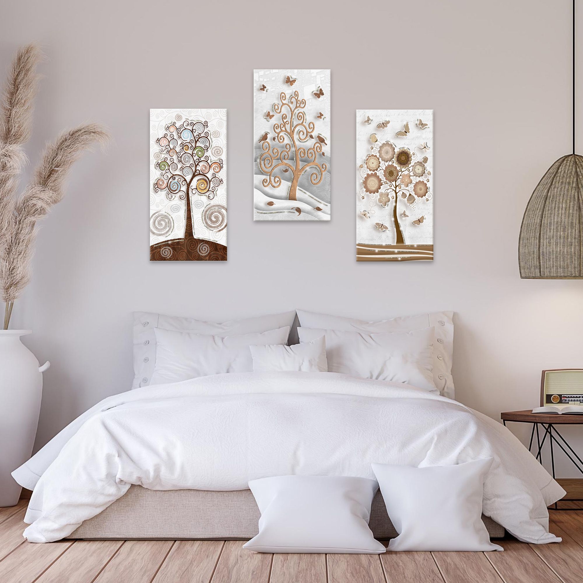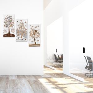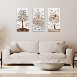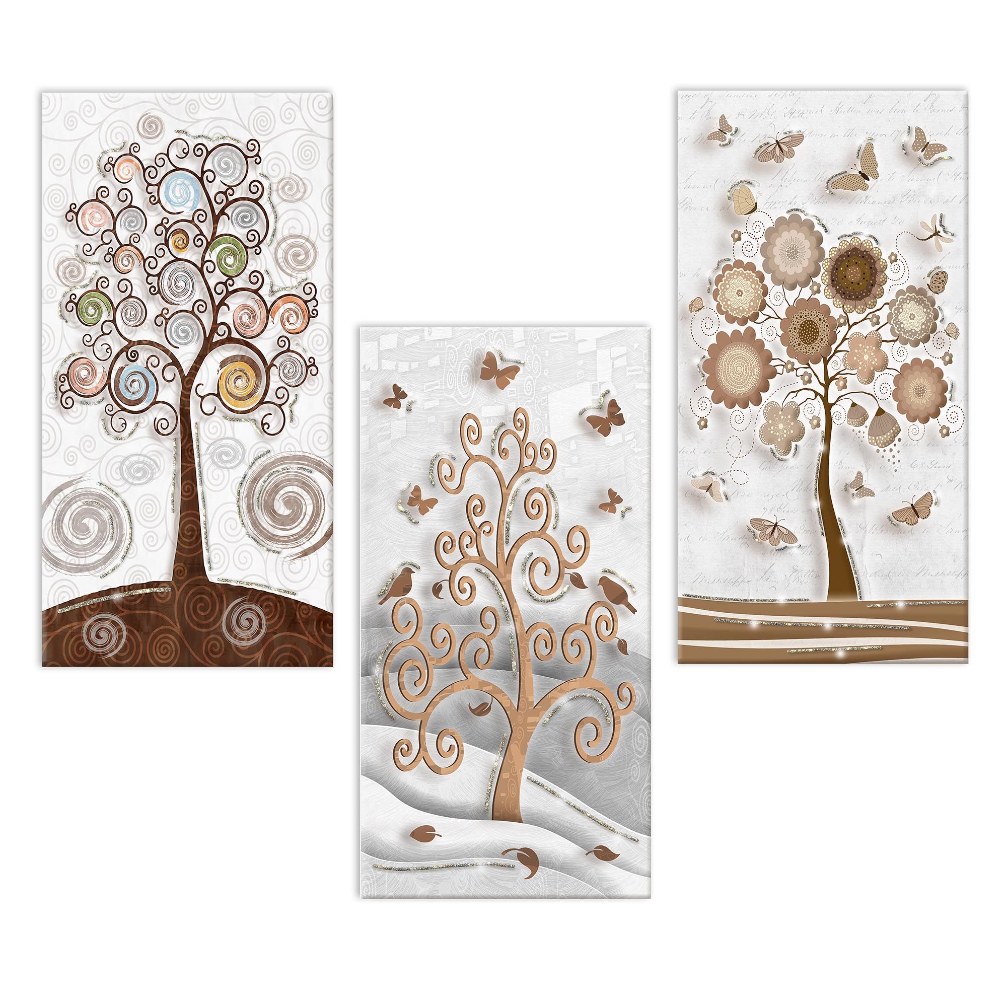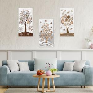 Il nostro Set composto da 3 Quadri su tela moderni offre 3 pezzi separati nelle dimensioni 38x75 cm ciascuno, caratterizzati da stampe con colori profondi e vividi. Una nuova ed originale decorazione con il tema albero della vita che nobilita e rende piacevole il tuo arredo con brillantini GLITTER. Ogni quadro è pronto da appendere con telaio in legno e tela pvc con spessore di 12mm, già montato, puoi appendere i 3 quadri come preferisci e nell'ordine che più ti piace per decorare la tua parete al meglio. Abbellisci la testa del tuo letto matrimoniale, la parete dietro al tuo divano o cucina, corridoio, ufficio, ingresso, bagno e dai spazio alla tua creativita'. Realizzato completamente in Italia.