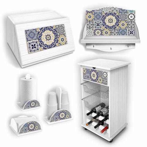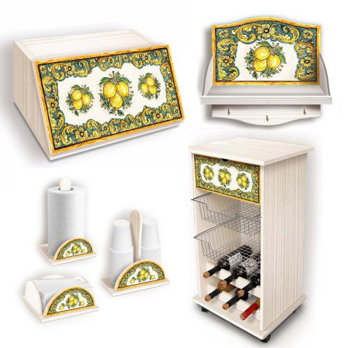 I Set di Cucina Shabby sono pensati per coloro che amano lo charme dei dettagli rustici. Questi accessori combinano dettagli vintage con una sensibilità shabby chic, creando un'atmosfera calda e familiare in cui cucinare e condividere momenti speciali con i propri cari. La nostra selezione comprende una varietà di Set di Cucina Shabby, che includono portabottiglie, portapane, portafrutta ma anche set di 3 pezzi composti da porta rotolo, porta bicchieri e porta tovaglioli. Sono disponibili in una vasta gamma di colori e disegni, come ad esempio decorazioni di maioliche, limoni gialli di SIcilia o ghirigori in bianco e nero.