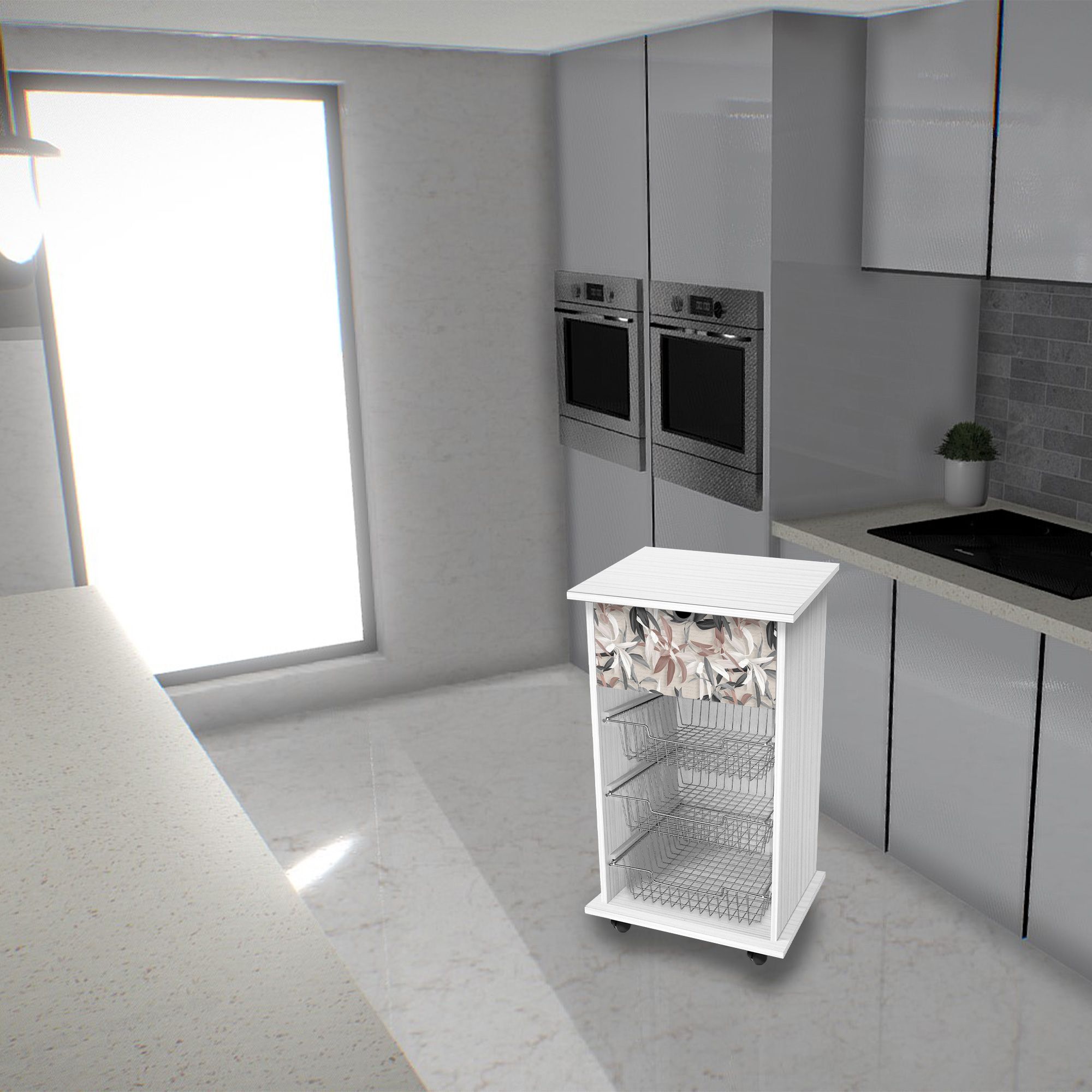 Lupia - Carrello Cucina Multifunzione Bianco WHITE LEAVES MIX, Portafrutta Ruote Piroettanti, Piano di Appoggio, tre Cestelli Estraibili in Acciaio, Legno 40X45H85 cm montato -