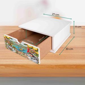 Le dimensioni esterne compatte di 27x33x11 cm permettono di ottimizzare lo spazio sul piano cucina o sulla scrivania. Il cassetto estraibile offre un vano interno di 21,3 x 29,5 x 8,3 cm, ideale per organizzare capsule, cialde, accessori caffè ma anche utensili da cucina, piccoli oggetti per la casa o articoli di cancelleria.