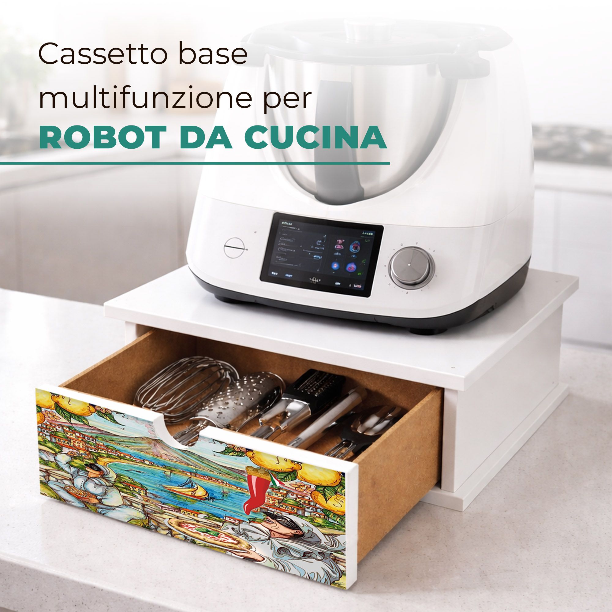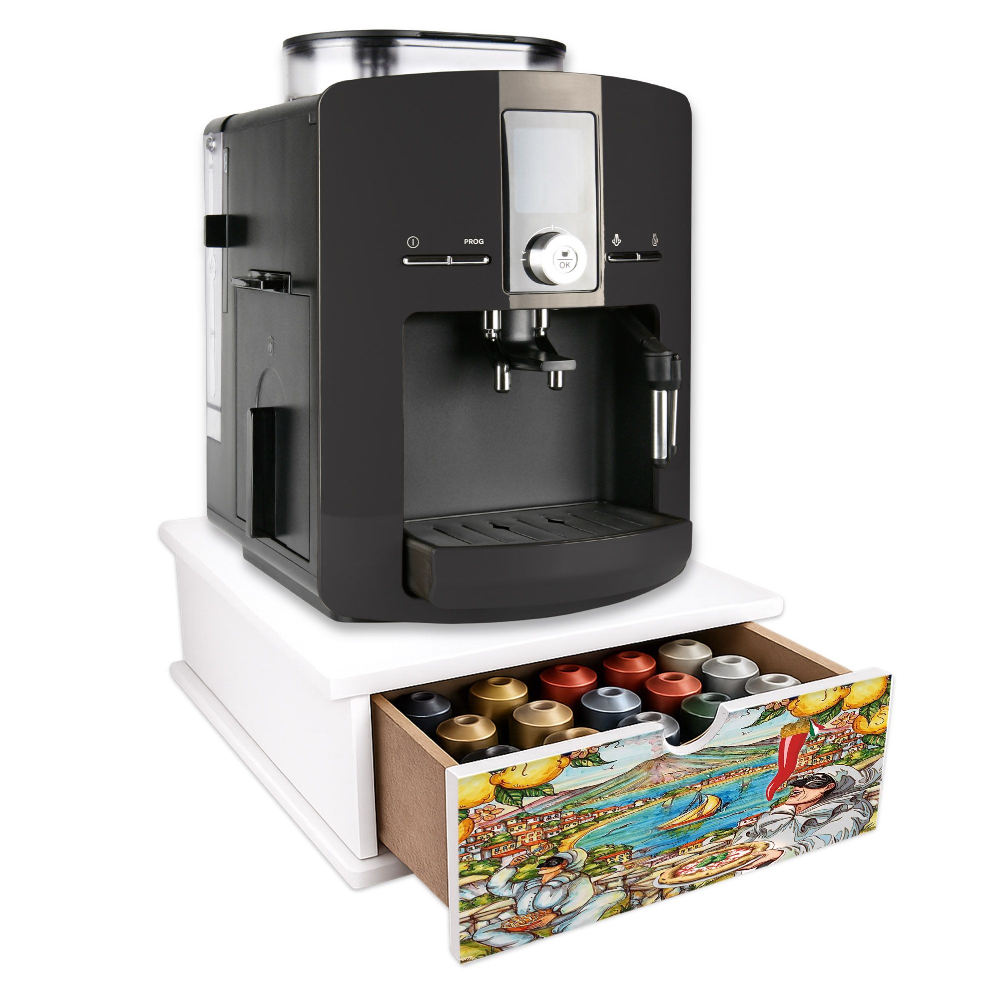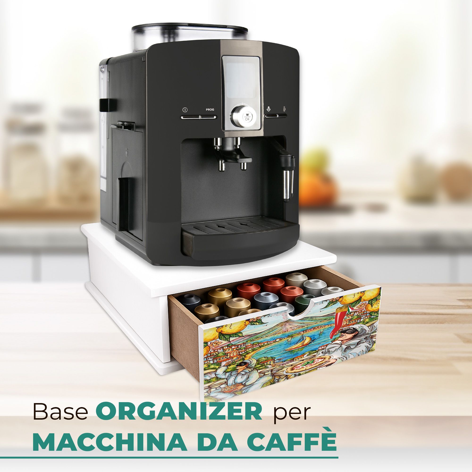 Lupia - Cassetto Porta Cialde Caffè e Porta Capsule 27x33x11 cm NAPOLI PULCINELLA, Contenitore Organizer per Caffè, Tè, Tisane e Zucchero, Angolo Bar in Legno Bianco Antimacchia per casa e ufficio -