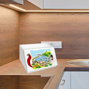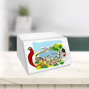 Lupia - Portapane White NAPOLI CARTOON 40x20x30cm, Conserva Freschezza Pane, Versatile per Cibo Secco, Design Unico, Apertura frontale con Aerazione, Chiaro, Legno -