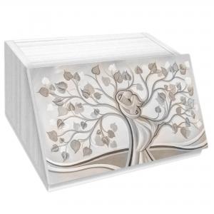 Il portapane White Albero Abbraccio è stato progettato con dimensioni generose per garantire la massima capacità di conservazione: con una larghezza di 40 cm, un'altezza di 20 cm e una profondità di 30 cm, offre ampio spazio per riporre vari tipi di pane, panini, baguette e altri alimenti secchi. La struttura è realizzata in fibra di legno da 12 mm, assicura stabilità e durata nel tempo, oltre a una resistenza ottimale agli urti e all'usura quotidiana.