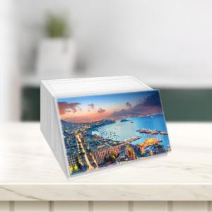 Scopri l'eleganza e la funzionalità del Portapane di Lupia, un'aggiunta indispensabile per ogni cucina moderna. Questo contenitore per cibo secco non è solo un oggetto pratico, ma anche un vero e proprio pezzo d'arredo grazie al suo esclusivo decoro con tema NAPOLI su pannello frontale in fibra di legno chiaro. Le dimensioni generose di 40x20 cm e 30cm di profondità offrono ampio spazio per conservare vari tipi di pane, panini e baguette, mantenendoli freschi più a lungo grazie alla piccola finestrella posteriore che garantisce una perfetta ventilazione.
