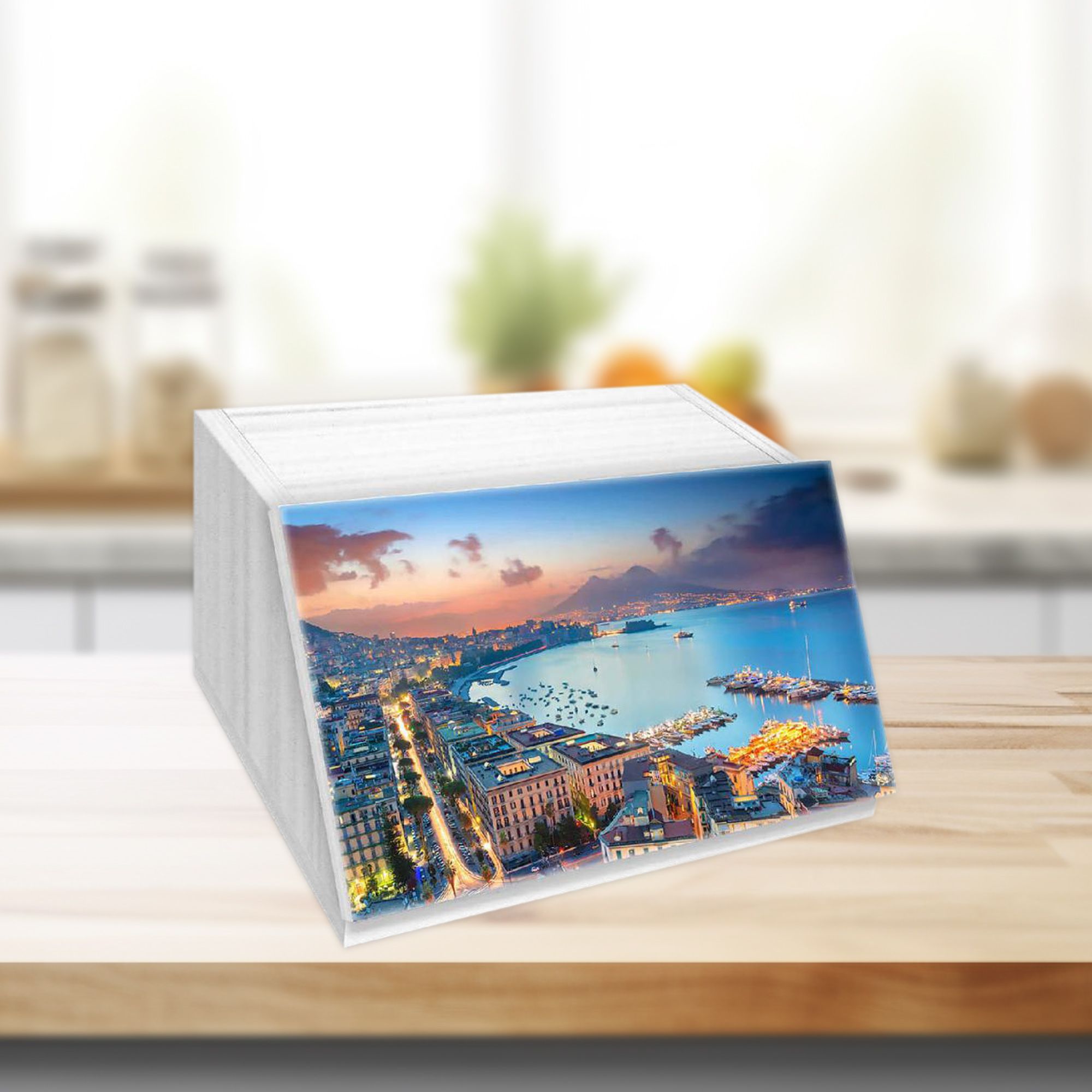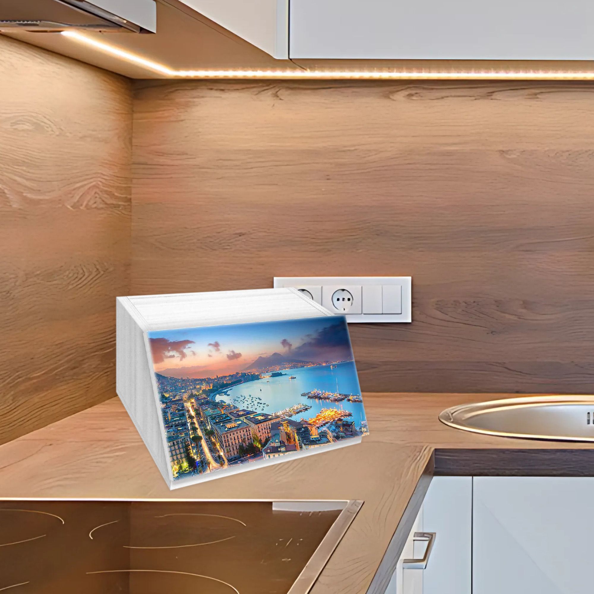 Lupia - Portapane White NAPOLI GOLFO DI SERA 40x20x30cm, Conserva Freschezza Pane, Versatile per Cibo Secco, Design Unico, Apertura frontale con Aerazione, Chiaro, Legno -